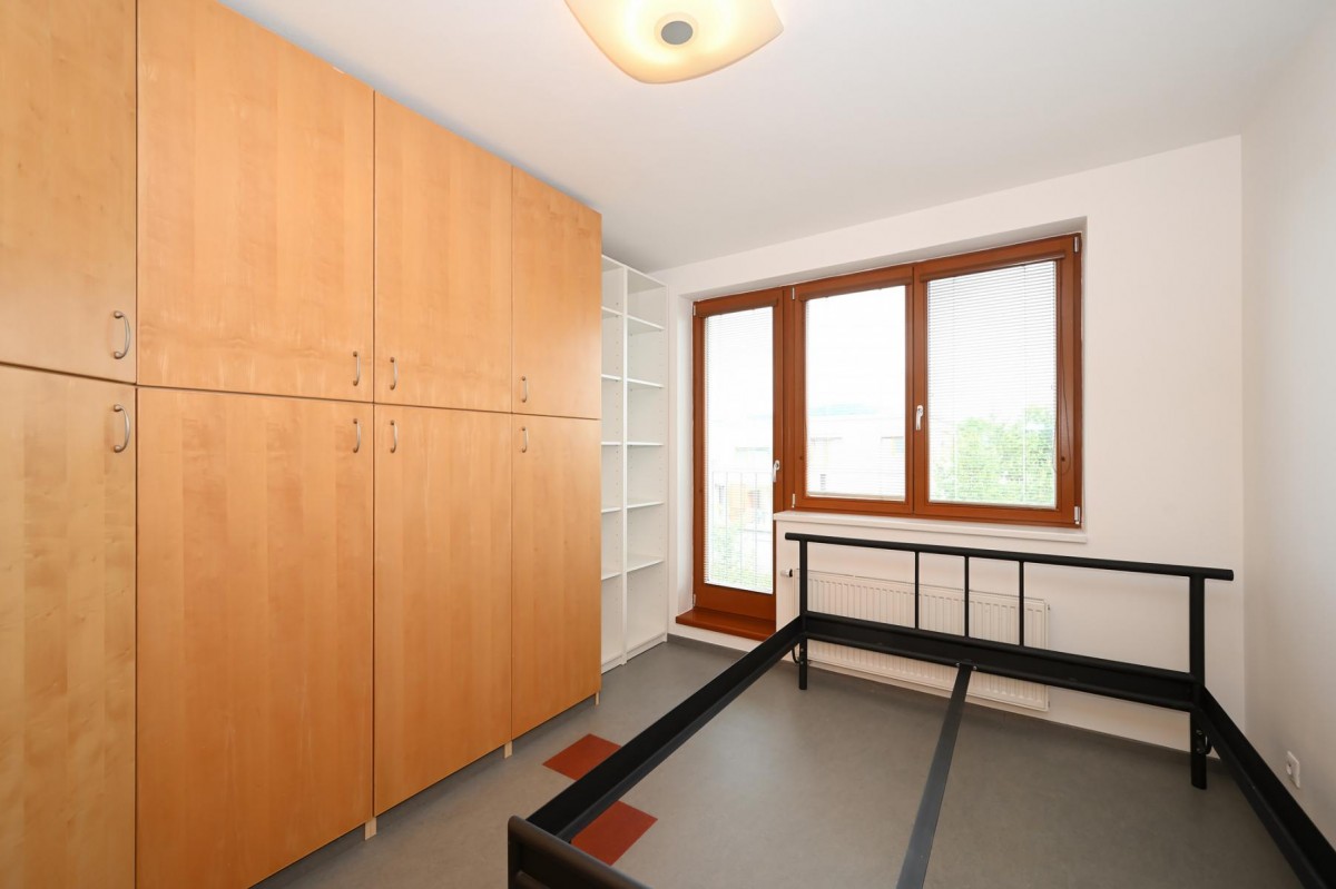 K bytu náleží balkon západním směrem do úžasného vnitrobloku. Ložnice vý...chodním směrem do klidné boční ulice. Dále velký sklep a možnost pronájmu parkovacího stání za 1. 000 CZK.