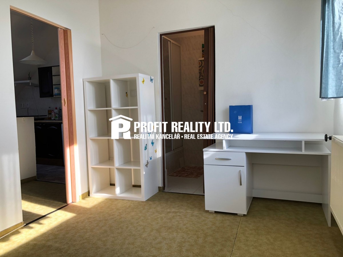 REZERVOV (osobní vlastnictví)ÁNO! Nabízíme k pronájmu částečně zařízený byt 2+kk v rodinném domku se zahradou se samostatným vchodem. Byt je vhodný pro jednu až dvě osoby. By...t má cca 40 m2 v cihlovém rod. domku 1. patro, pohodlné schodiště, kuchyňský kout oddělen barovým pultem, vybavená jen kuchyně: sporák, trouba, lednice, pračka, možno dozařídit. Jeden pokoj je průchozí. Možnost využití terasy a zahrady, parkování na ulici. V bytě je úložný prostor. Nájemné je 12000 Kč + poplatky 3000 Kč, kauce 30000 Kč, provize 15000 Kč. K nastěhování ihned.