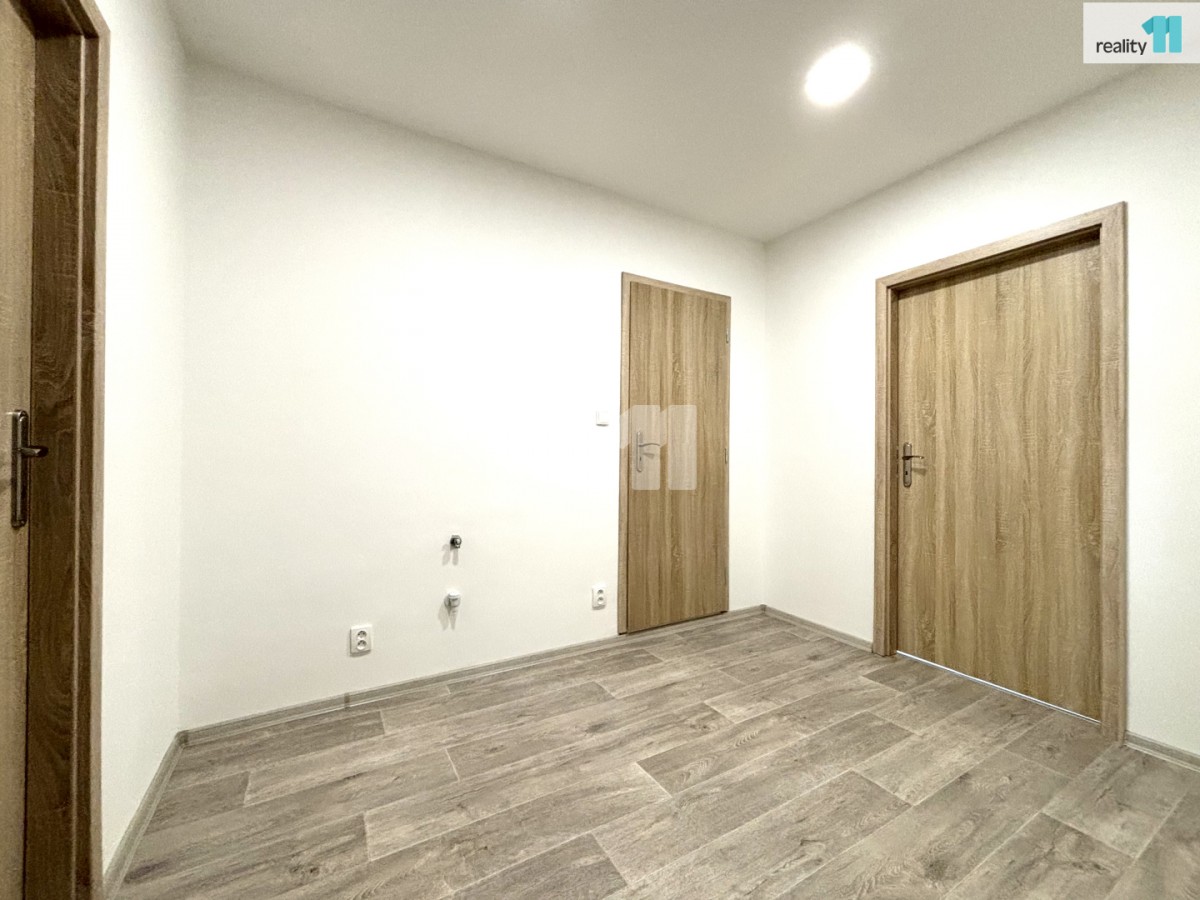 Dispozičně rozdělen do obývacího pokoje s ...kuchyňským koutem, ložnice a prostorná vstupní chodba. Součástí je koupelna se sprchovým koutem a sociální zařízení WC. Kuchyň je vybavena kuchyňskou linkou včetně spotřebičů (vestavěný sporák, sklokeramická deska, komínový odsavač par, myčka). Příjemné prostředí v bytě vytvářejí snížené stropy s bodovými světly v kuchyni, koupelně a na chodbě.
