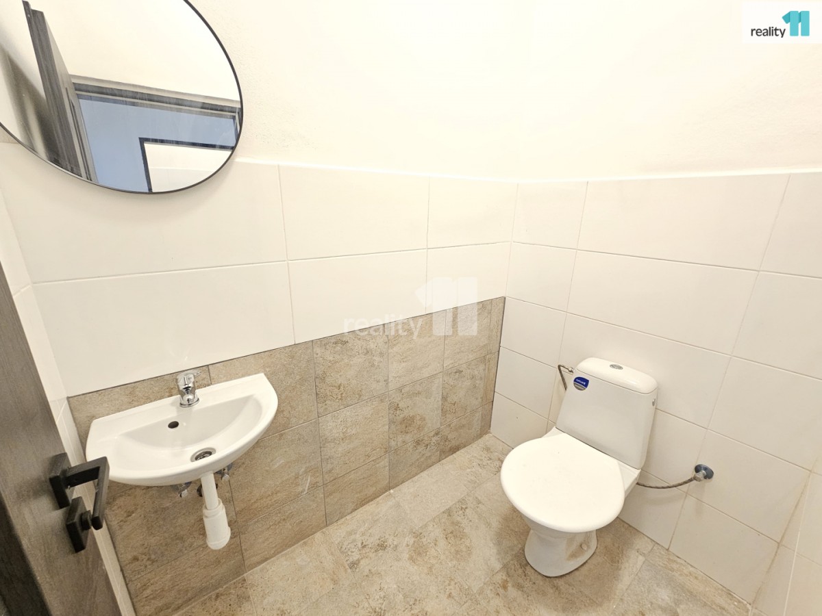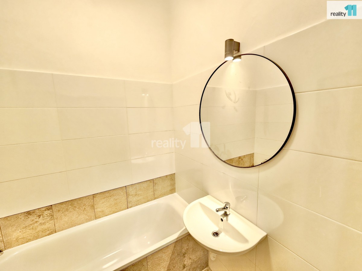 Dále se v bytě nachází samostatná koupelna s vanou, bojlerem, umyvadlem, velkým zrcadlem. Samostatně sociální zařízení WC se nachází v další místnosti.