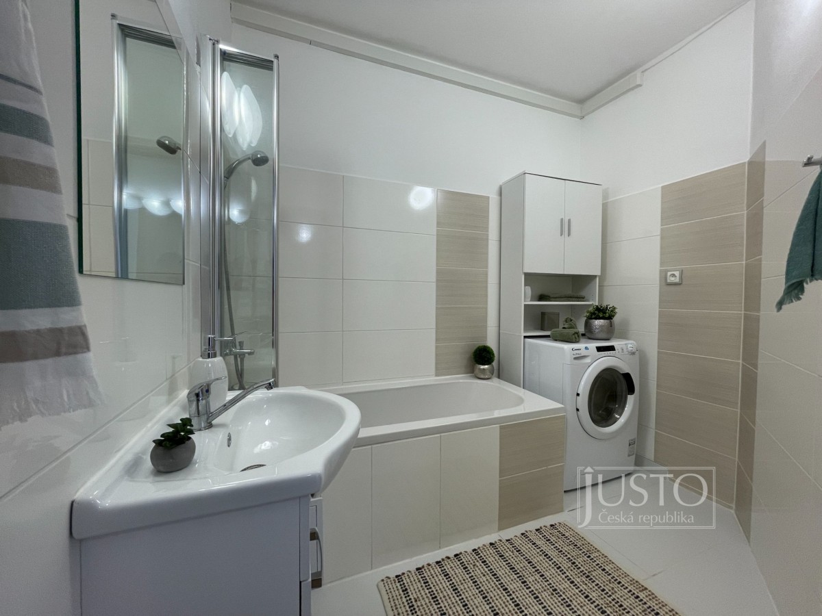 Majitelé byt v letošním roce celý zrekons...truovali. Užijete si plně vybavenou novou kuchyňskou linku s veškerými potřebnými spotřebiči (digestoř, mikrovlnná i horkovzdušná trouba, chladnička s mrazákem, sklokeramická deska, myčka nádobí + LED svícení nad pracovní deskou).