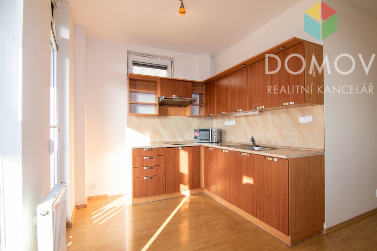 Obývací pokoj je průchozí, kuchyňská linka je ...vybavena sporákem, elektrickou troubou a digestoří. Západní sluníčko si můžete vychutnat na terásce, na kterou vstoupíte z kuchyně francouzským oknem. Z ložnice se dostanete do koupelny s vanou, sociální zařízení WC je oddělené, přístupné z chodby. V chodbě je praktická vestavná skříň. Okna jsou plastová, podlahy plovoucí. K bytu náleží sklepní kóje. V domě je výtah.