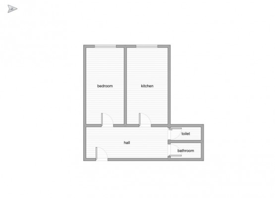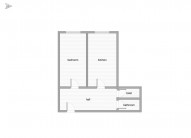 Byt má dvě neprůchozí... místnosti, v jedné z nich je nová praktická kuchyňská linka se spotřebiči jako je trouba se sklokeramickou varnou deskou a lednice s mrazákem.