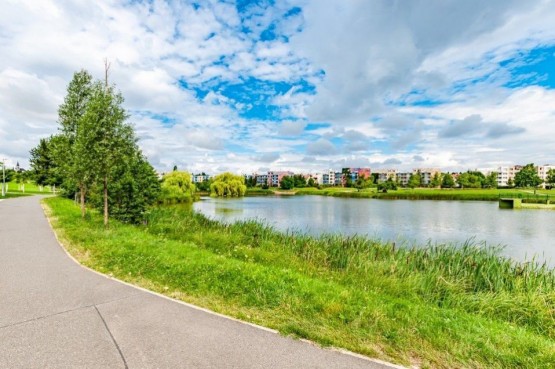 V okolí domu je plno zeleně, velký park s rybníkem, možnost procházek, projížděk na kole i bruslích. Několik dětských hřišť, školka, škola s rozšířenou výukou jazyků.