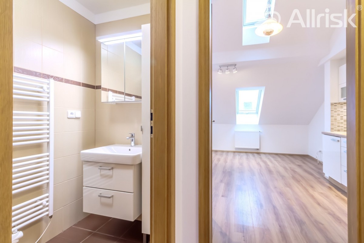 Nabízíme vám k pronájmu velice pěkný půdní byt 2+kk o celkové ploše 42, 8m2 + balkon o velikosti 4, 3m2. Byt se nachází ve čtvrtém nadzemním podlaží, v do...mě není výtah. Byt je v Grafické ulici, v širším centru Prahy, bezprostředně sousedící s velkými developerskými projekty Sacre Coeur 2 a Neugraf. Byt je částečně vybavený pěknou kuchyňskou linkou (včetně sklokeramické varné desky a trouby), lednička, digestoř. sociální zařízení WC je samostatné a v koupelně je sprchový kout. Součástí bytu je objemný úložný prostor přístupný sklopnými půdními schody. V bytě je nainstalován plynový kotel na ohřev teplé vody a ústředního topení. Byt je vybaven klimatizací značky LG s venkovní jednotkou. V bytě je zaveden vysokorychlostní internetové připojení na technologii optického kabelu od firmy Opton, Vodafone nebo O2, dále je byt vybaven domovním videotelefonem s funkcí elektrického vrátného. Celý byt je sjednocen velice praktickou vinylovou podlahou. OC Anděl je skrz městský park Sacre Couer od bytu vzdáleno pouze 8 minut pěší chůze, Kampa 15 minut. Velmi dobrá dopravní dostupnost: tramvajová zastávka Bertramka 3 min. , autobusová zastávka Holečkova 1 min. , metro Anděl 10 min. Nájemné činí 22 000, - Kč/měsíc, a celkové náklady na bydlení při obsazení jednou osobou jsou cca 4 000, - Kč/měsíc. Vratná kauce ve výši 1 krát měsíční nájemné, odměna RK ve výši 1 krát měsíční nájemné plus DPH v zákonné výši. Pro více informací a prohlídku, kontaktujte, prosím, makléřku.