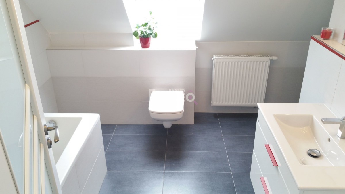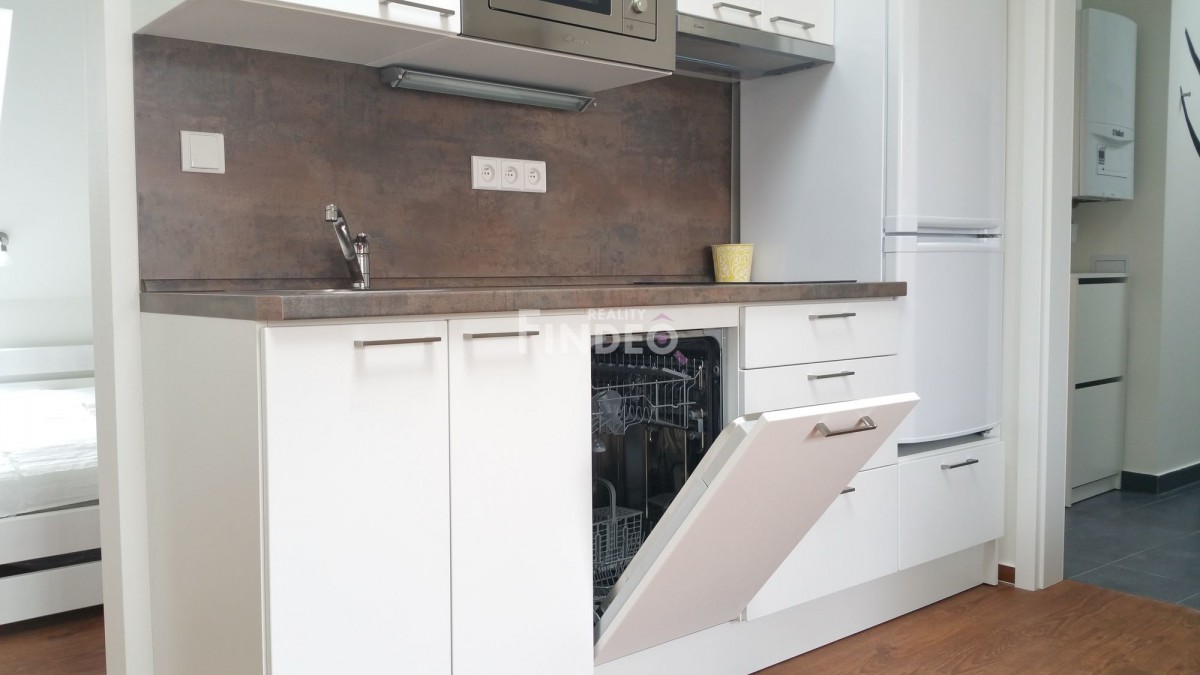 Naše společnost Findeo. cz Vám nabízí, ve výhradním zastoupení majitele, pronájem novostavby podkrovní bytové jednotky o dispozičním řešení 2+kk s balkónem a sklepem.