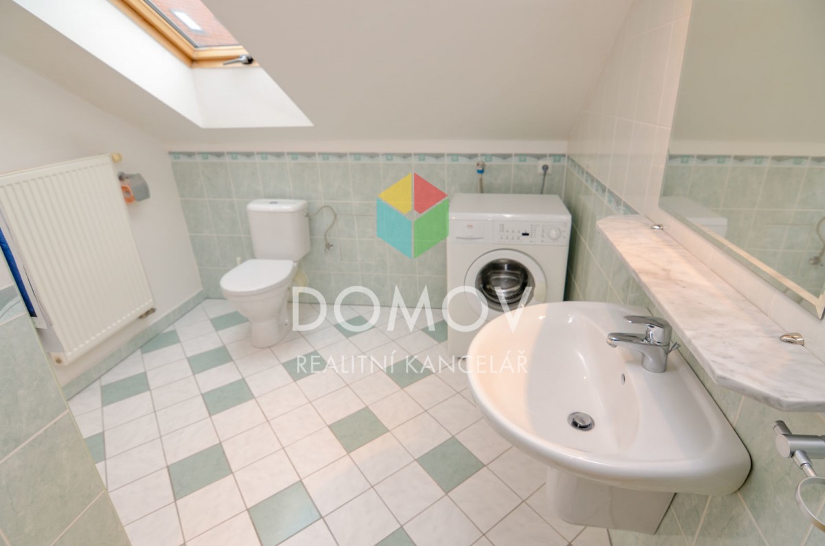 Nabízíme Vám k pronájmu byt 2+kk o výměře 44, 5 m2. Obývací pokoj je vybaven skříňkami, 2 křesly, konferenčním stolkem a jídelním stolem se 2 židlemi. V kuchyňské ...lince s dostatečným počtem skříněk je dřez, elektrický sporák s troubou a digestoř. V koupelně najdeme sprchový kout, umyvadlo, záchod a pračku. V bytě je dále ložnice a praktická šatna s policemi. Byt se nachází v podkroví rodinného domu v Loděnici - části Jánská. Jedno auto lze parkovat před domem. V bytě je možné využívat anténní přípojku i wi - fi připojení. Jedná se o klidné místo blízko lesa, nájezd na dálnici D5 v sousední Loděnici za 2 min jízdy. Byt je vhodný pro 1 - 2 osoby bez zvířat. Při podpisu nájemní smlouvy skládá nájemce vratnou kauci 12. 500, - Kč a provizi RK 9. 500, - Kč + DPH. Volné ihned.