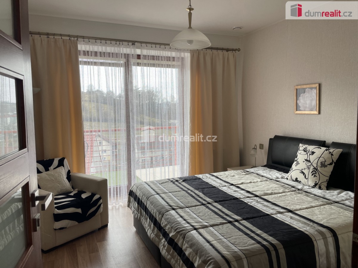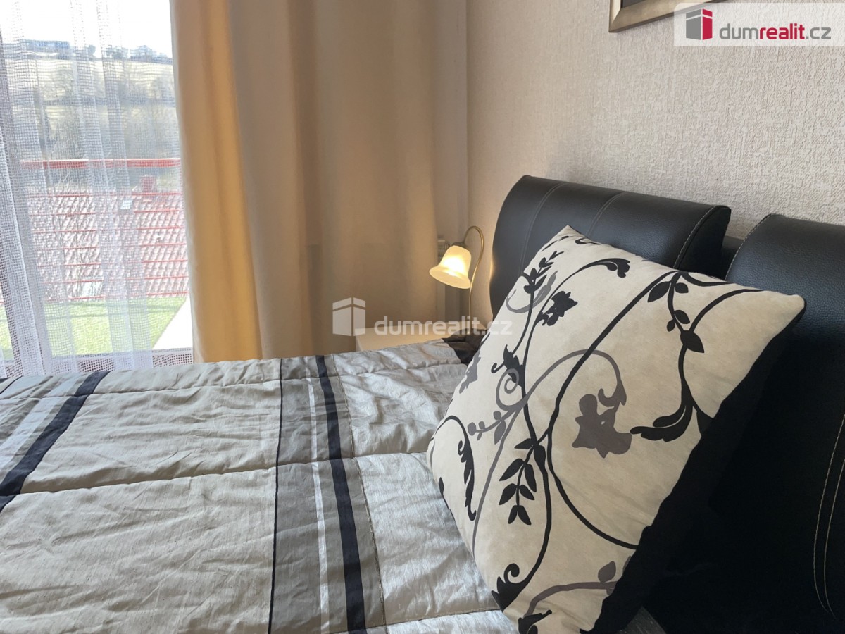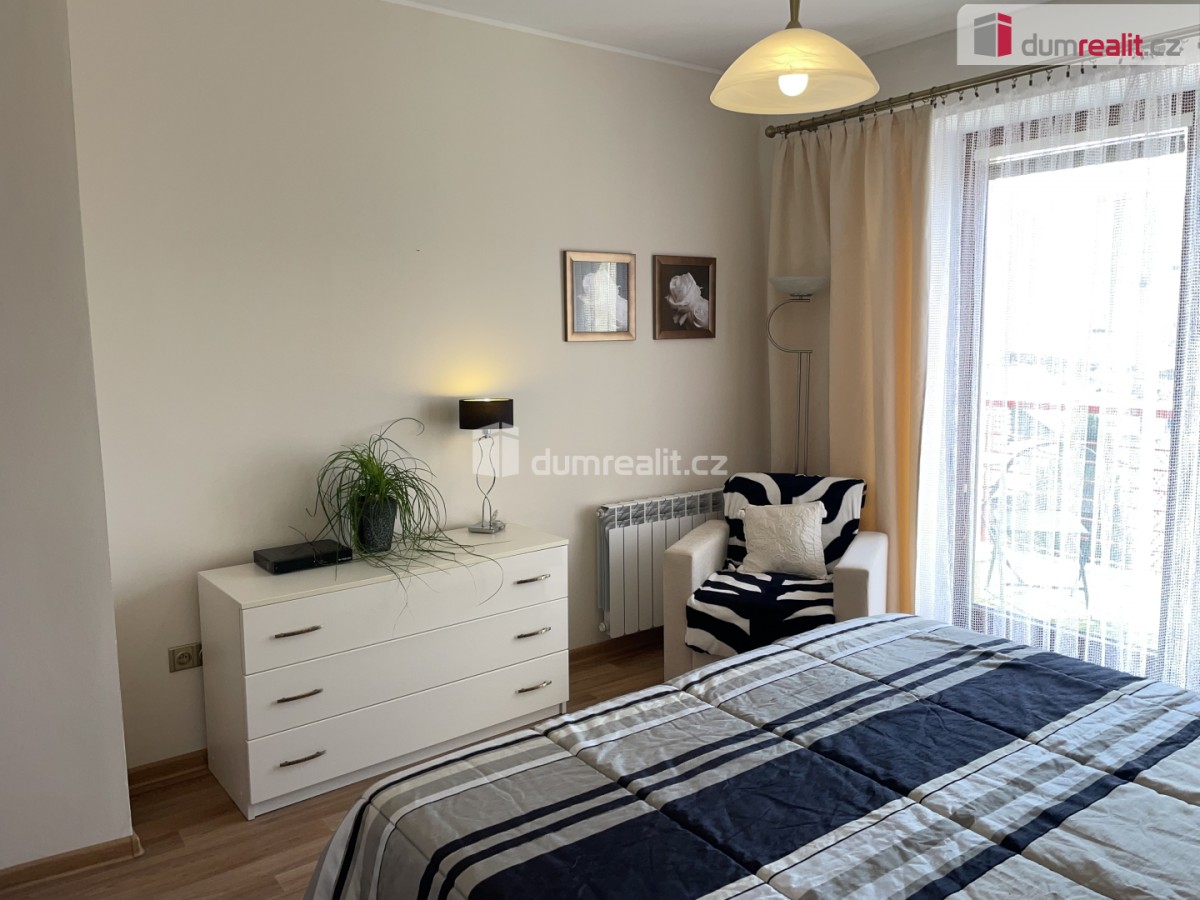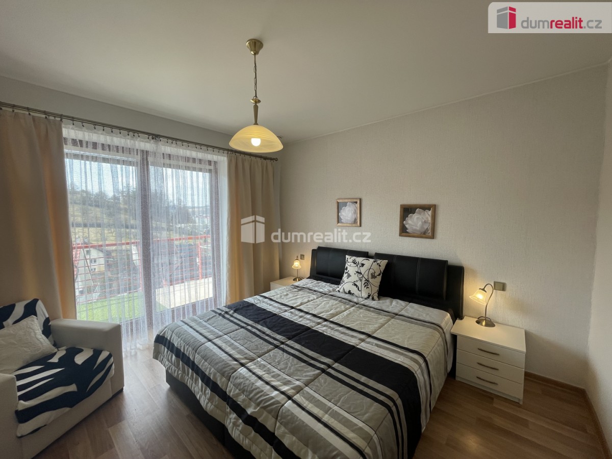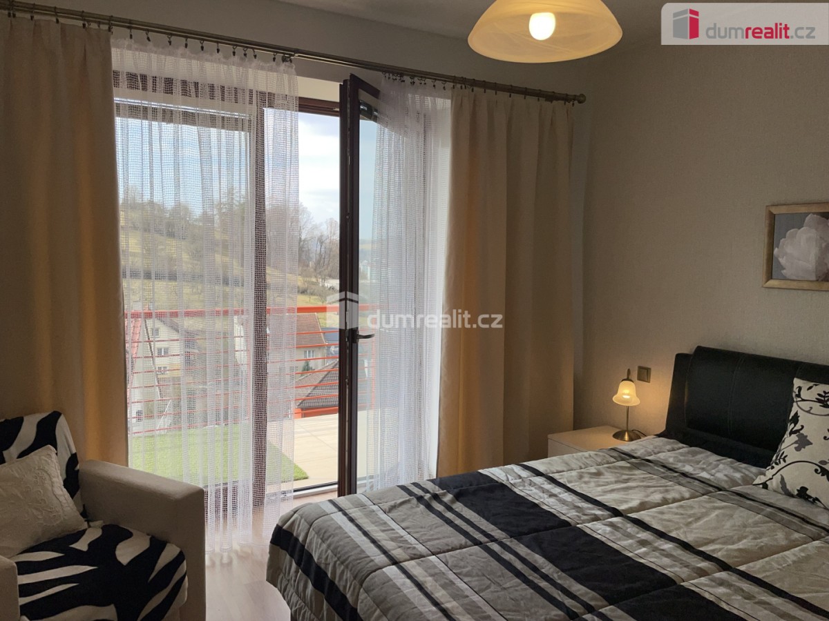 Ložnice má rovněž velkou terasu s výhledem je samostatná s dvojlůžkem s kvalitními matracemi. Terasa propojuje oba pokoje a dává bytu nadstandartní kvalitu.
