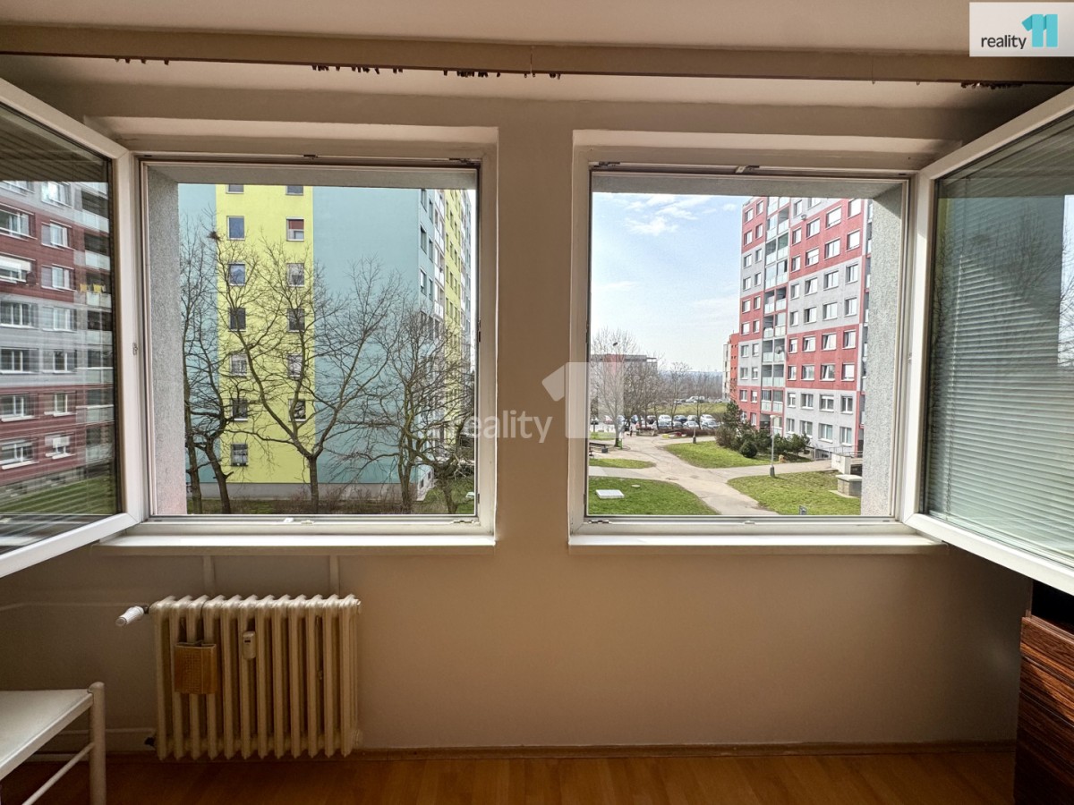 Byt je díky velkým oknům orientovaným na jižní stranu velice dobře prosvětlený a nabízí příjemný otevřený výhled. Z ložnice je přímý vstup na zasklenou lodžii čtvercového půdorysu, která poskytuje ideální prostor pro odpočinek – pohodlně se sem vejde menší stolek se dvěma židlemi a je tak skvělým místem pro večerní posezení.