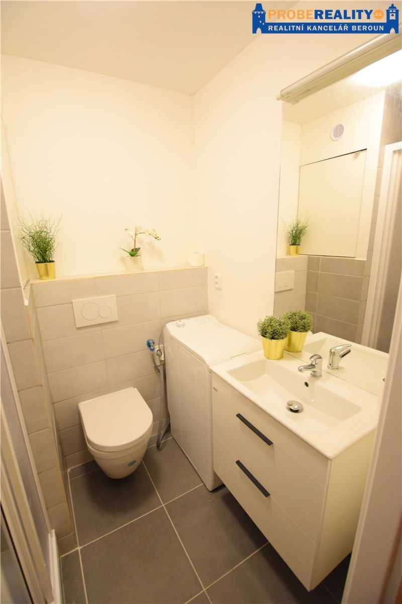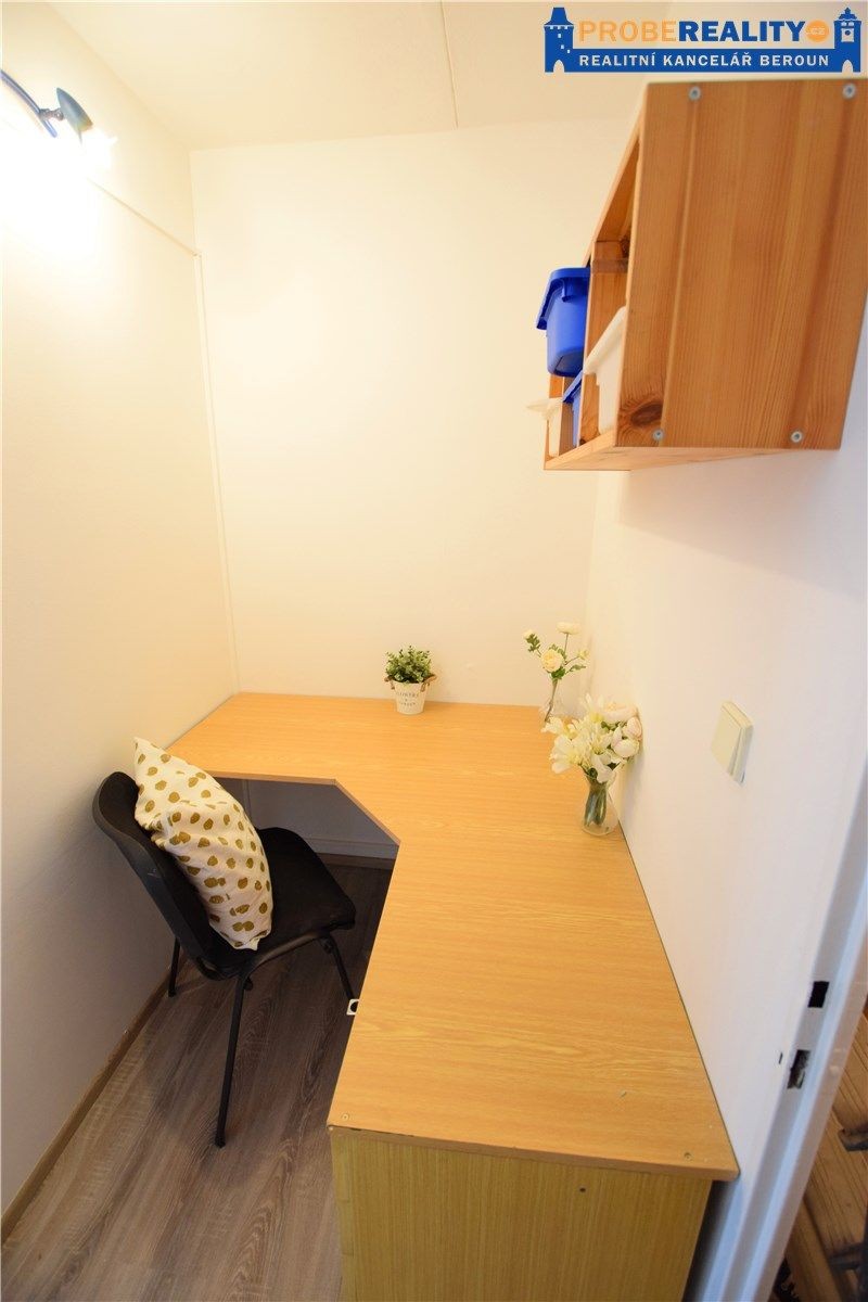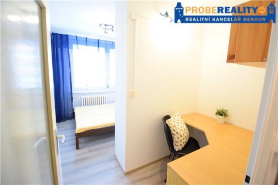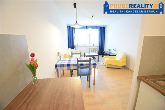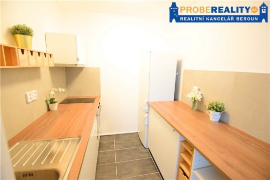 Byt. jednotka prošla nedávno hlavní rekonstrukcí - nové bytové jádro, spojená koupelna se sprchou a sociální zařízení WC, pračka, plovoucí podlahy či PVC. V chodbě je k dispozici velká vestavná skříň. Ložnice je polopříčkou rozdělena na spací část a pracovní kout a nabízí také úložné prostory. Kuchyňský kout je propojen s obývacím pokojem a vybaven novou kuchyňskou linkou (lednice, el. trouba, dvouplotýnka, digestoř). Obývací pokoj je plně zařízen (lze také dodat funkční TV). Celý byt je k dispozici s vybavením na fotkách.