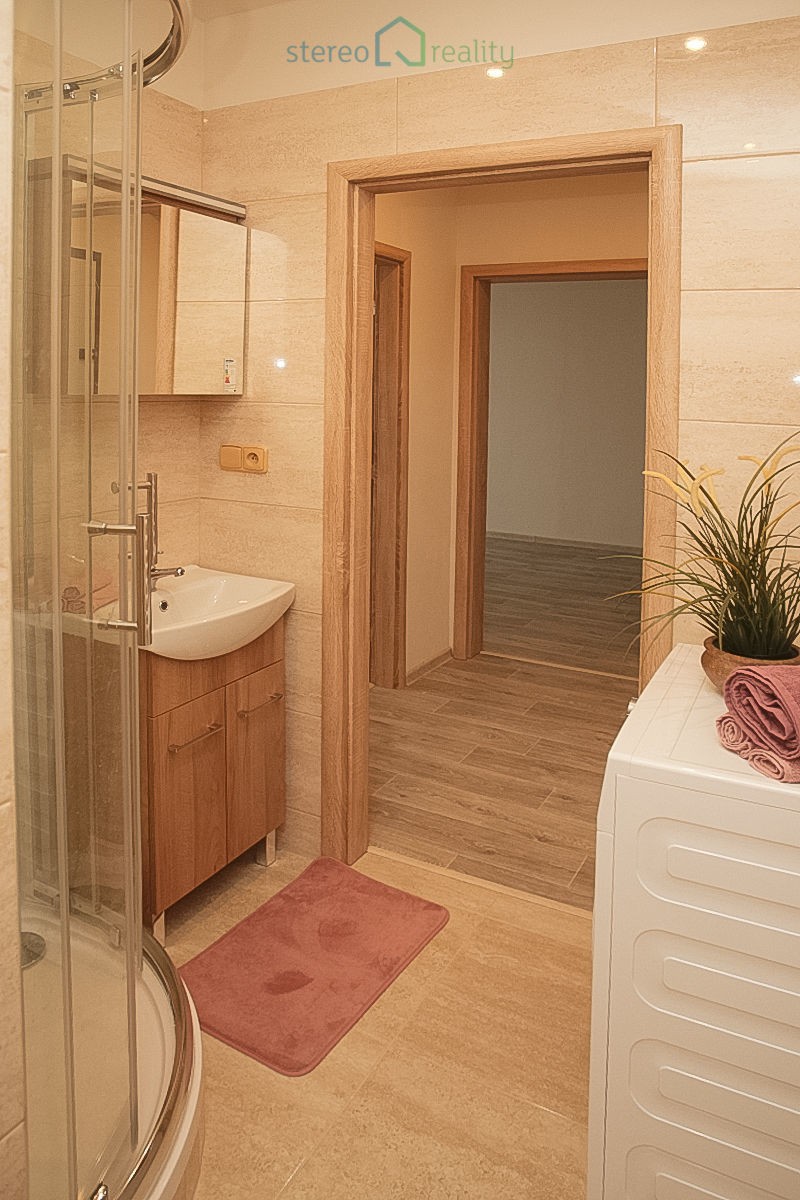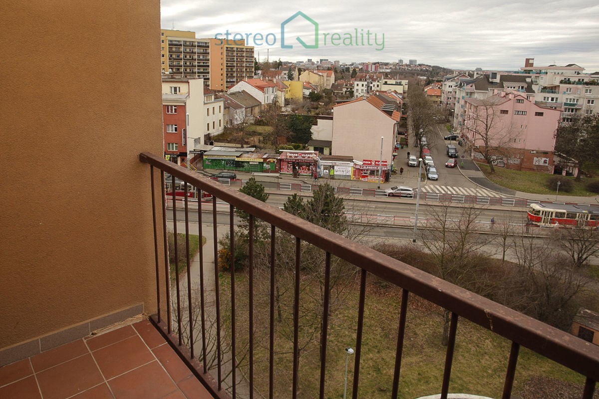 Byt, který je nově po rekonstrukci se skládá z obývacího pokoje a ložnice, které jsou vzájemně neprůchozí. Součástí obývacího pokoje je plně vybavený kuchyňský kout (sklokeramická deska, digestoř, trouba, myčka a chladnička s mrazákem). Z ložnice je vstup na balkón s příjemným výhledem na Strašnice. Koupelna se sprchovým koutem je spojená s toaletou. Byt je vybaven pračkou. K bytu náleží sklepní koje o velikosti 2 m2. K dispozici nájemníkům bude i prostorná a uzamykatelná prádelna, která se nachází na patře.
