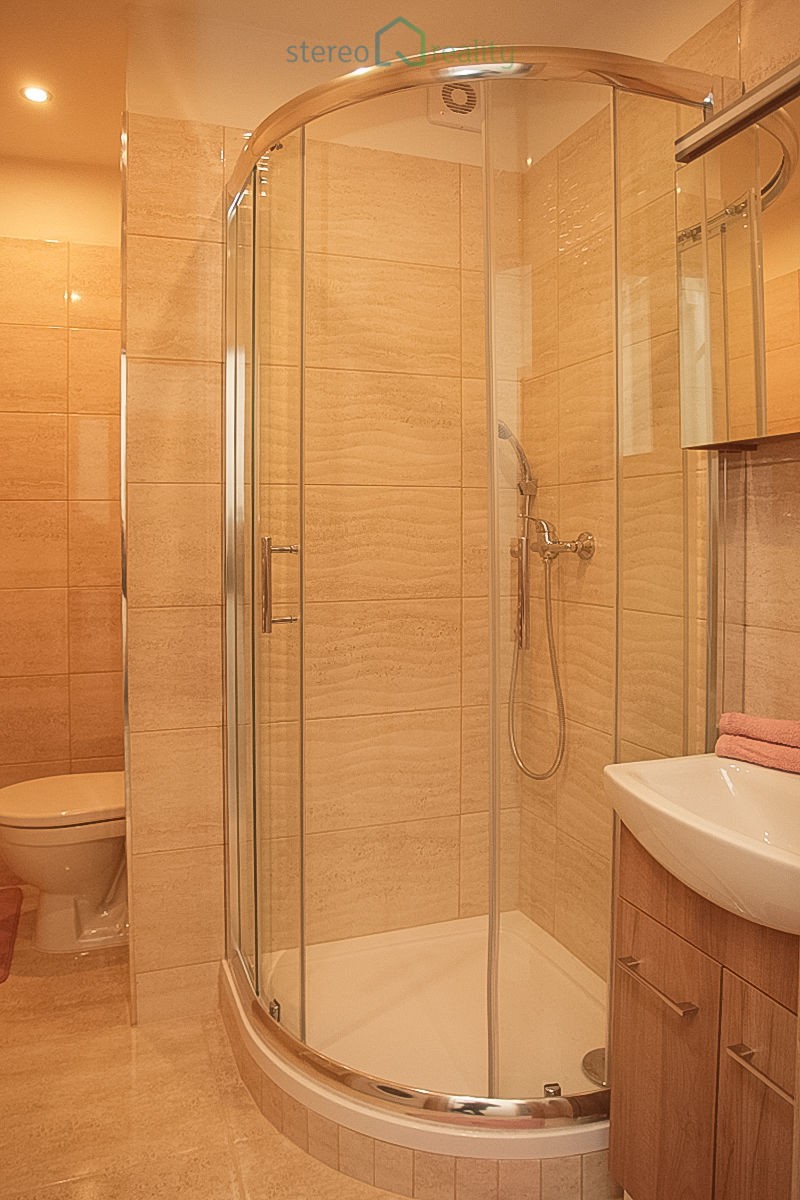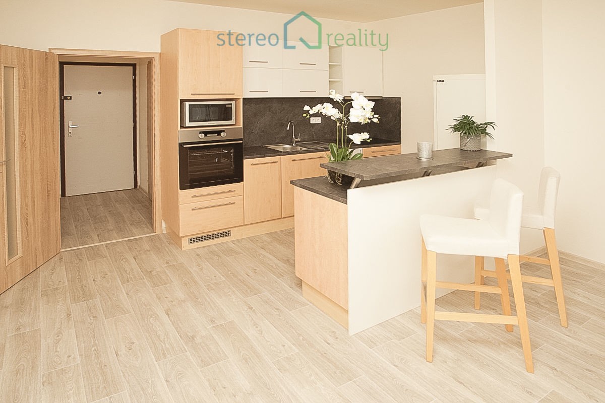 Byt, který je nově po rekonstrukci se skládá z obývacího pokoje a ložnice, které jsou vzájemně neprůchozí. Součástí obývacího pokoje je plně vybavený kuchyňský kout (sklokeramická deska, digestoř, trouba, myčka a chladnička s mrazákem). Z ložnice je vstup na lodžii s příjemným výhledem na Strašnice. Koupelna se sprchovým koutem je spojená s toaletou. Byt je vybaven pračkou. V ložnici je velká vestavěná skříň. K bytu náleží sklepní koje o velikosti 2 m2. K dispozici nájemníkům bude i prostorná a uzamykatelná prádelna, která se nachází na patře.