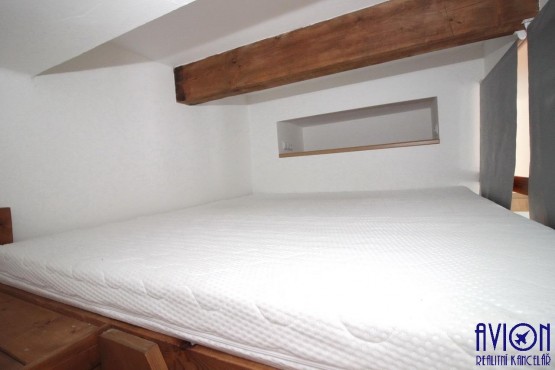 Byt je téměř kompletně zařízený dle foto. Má prostorný pokoj ...20 m2 s vestavěným patrem na spaní a obývací pokoj s kuchyňským koutem 17 m2, s okny do boční ulice. Plovoucí podlahy v pokojích, v koupelně a na toaletě je dlažba. Kuchyňská linka se sklokeramickou varnou deskou, lednička, pračka v koupelně. V obývacím pokoji je téměř nová rozkládací sedací souprava, šatní skříň v předsíni a pokoji, velké patro na spaní 180x200, pracovní stůl pod patrem na spaní, velký úložný prostor ve sníženém stropu předsíni. V koupelně se sprchovým koutem se nachází pračka, toaleta je samostatná s umyvadlem. Vytápění je ústřední (radiátory) s vlastním plynovým kombinovaným kotlem.