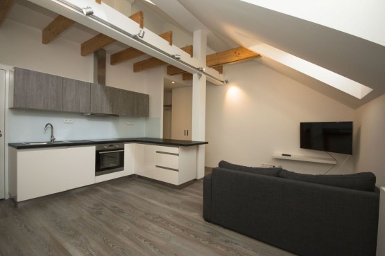 Krásný, světlý byt k pronájmu, nacházející se ve 4. patře cihlového domu bez výtahu. Dům je po kompletní rekonstrukci. Dispozice bytu - ložnice v patře, kuchyň se spotřebiči, lednice s mrazákem, šatní stěna v předs...íni, v koupelně odkládací police, umyvadlo a sprchový kout, pračka, na sociální zařízení WC úložné prostory ve vestavěné stěně, instalována svítidla, bezpečnostní dveře, videotelefon pro otevírání vchodových dveří, žaluzie na oknech, klimatizace. Náklady k nastěhování jsou: 1 nájem odměna za zprostředkování, 1 nájem deposit, 1. nájem + záloha na poplatky. K nastěhování ihned.