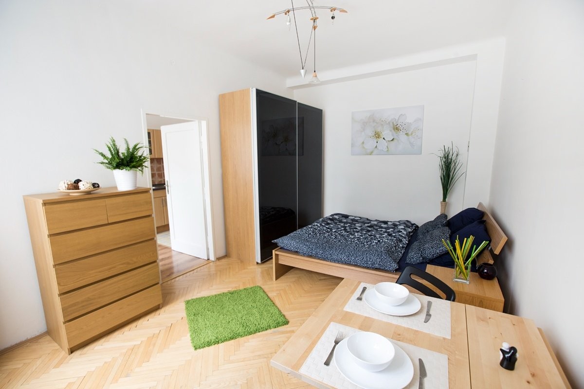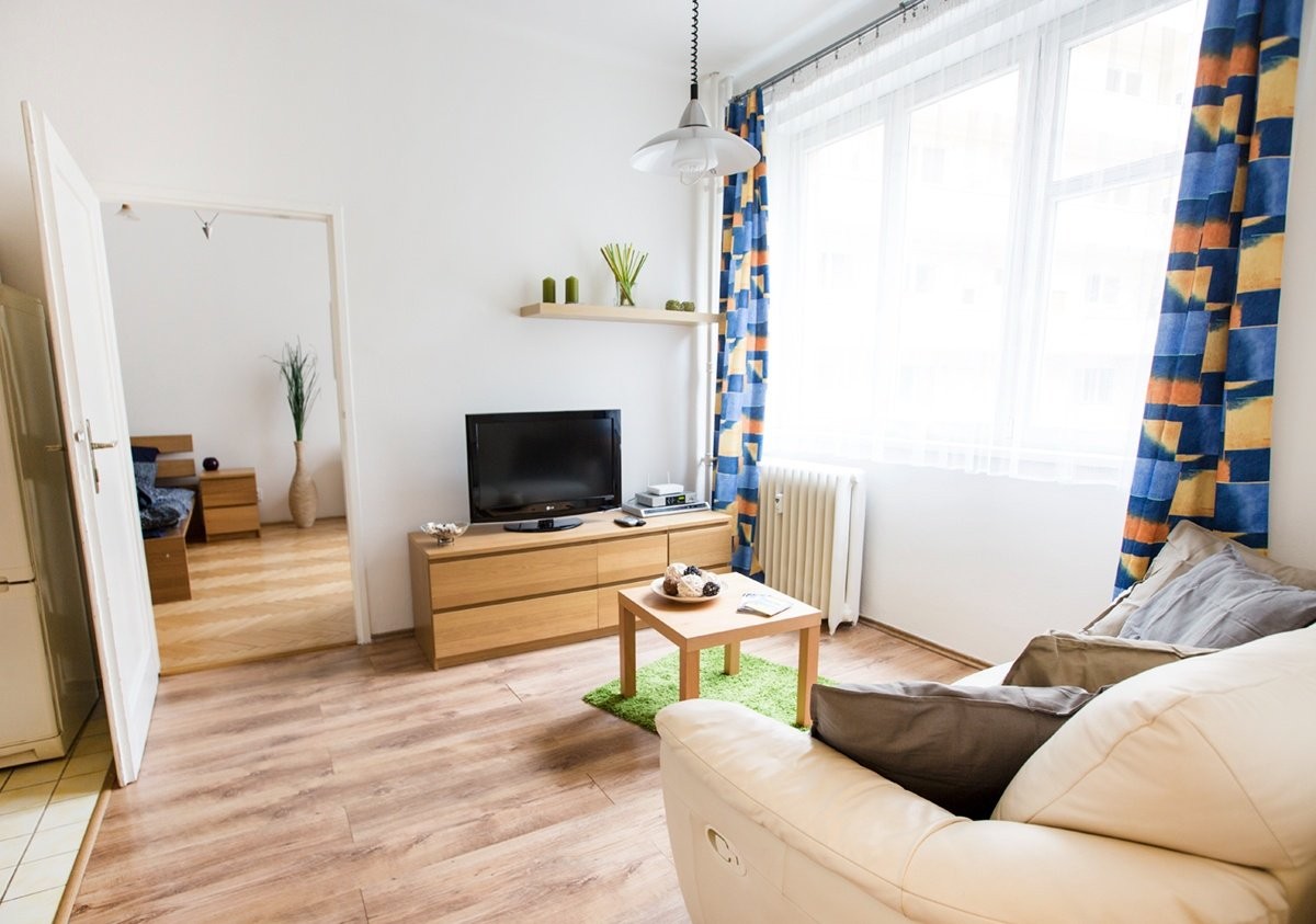 Byt se skládá z ložnice, obývacího pokoje s kuchyňským koutem, koupelny a samostatného sociální zařízení WC.