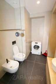 Koupelna je prostorná, s velkým sprchovým koutem, s sociální zařízení WC, bidetem a pračkou se sušičkou.