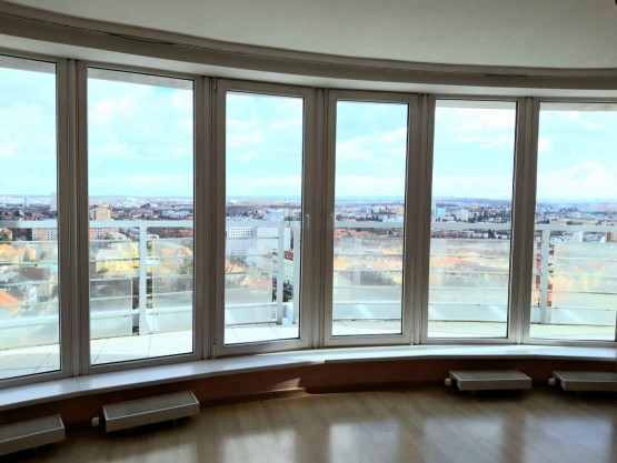 Volný od 1. 4. Nabídka pronájmu luxusního prostoru ve 20. patře domu ve Strašnicích. Jedná se o ojedinělou nabídku 2 + kk ve tvaru půlkruhu, který nabízí všemožné využití. Prostor je z 1/3 osazen velkými okny a celý je z... venkovní strany ohraničen metrovým ochozem, poskytujícím nádherný výhled na Prahu. Dispozičně je řešen ložnicí s vestavnou skříní po pravé straně od vchodu a po levé straně velkoryse pojatou koupelnou s obklady Villeroy a Boch, která nabízí sprchový kout, vanu a sociální zařízení WC. Dále se prostor rozprostírá do půlkruhu s obytnou částí a je zakončen kuchyňským koutem s linkou a veškerými spotřebiči, dále pak stolkem a židlemi. Byt má výbornou dopravní dostupnost, tramvajová zastávka před domem, 2 zastávky metro Jana Želivského a Strašnická. V okolí domu je veškerá občanská vybavenost. K prostoru je možno pronajmout parkovací stání v domě. Majitel atelieru požaduje vratnou kauci a RK provizi ve výši jednoho nájemného. Pro více informací kontaktujte prosím makléře.