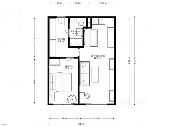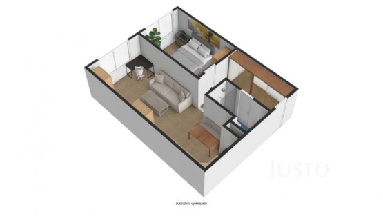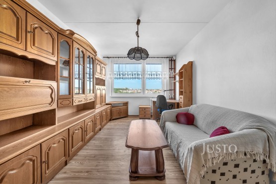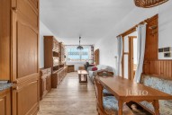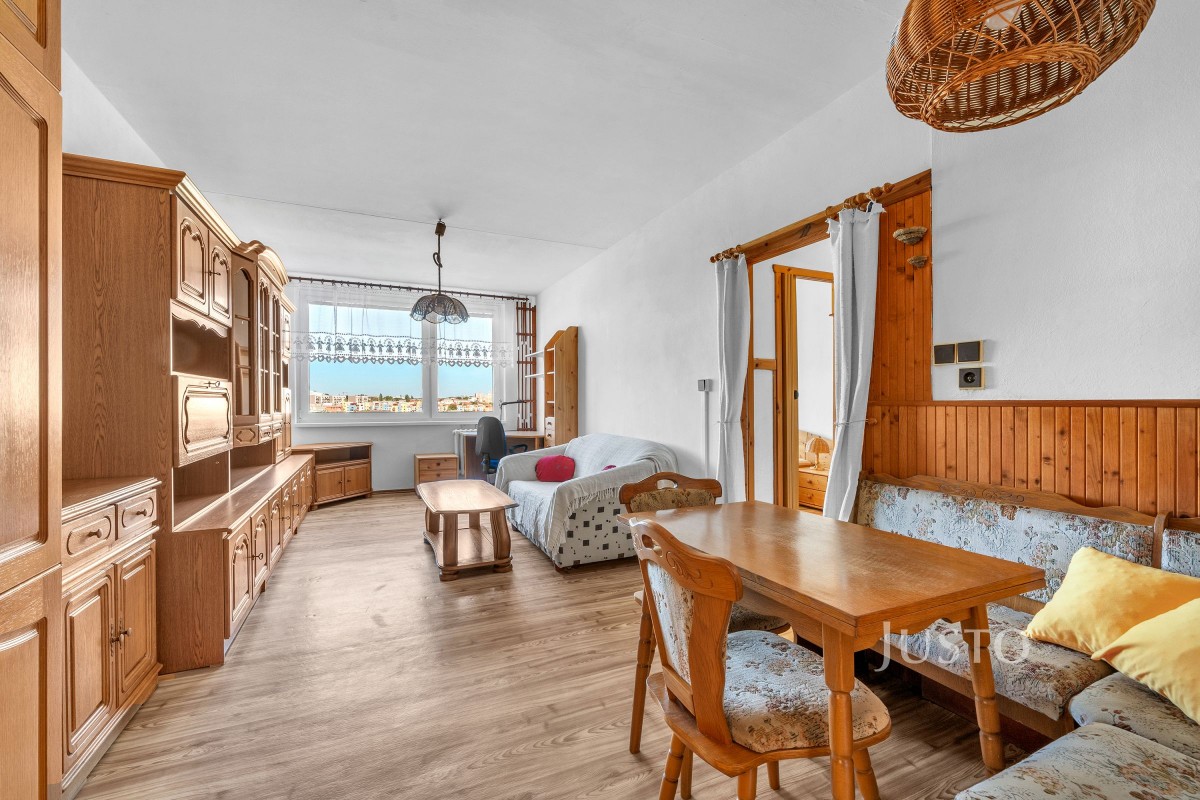 Byt je plně vybavený nábytkem a spotřebiči. Stačí se jen nastěhovat.