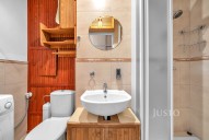 ● koupelna se sprchovým koutem, pračkou a toaletou.
