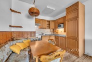 ● kuchyňský kout s jídelním stolem a kuchyňskou linkou vybavenou spotřebiči (el. sporák, digestoř, mikrovlnná trouba, lednice s mrazákem)
