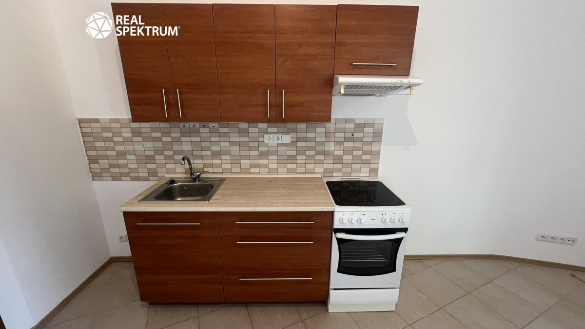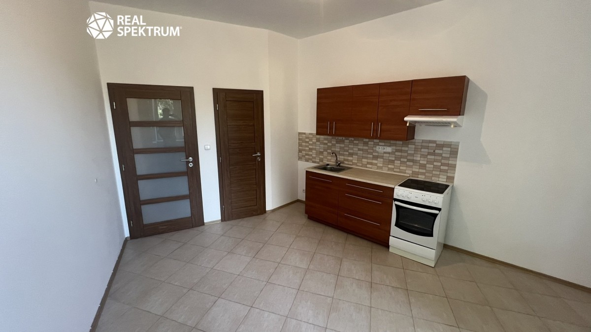Vybavení: kuchyňská linka, elektrický sporák, digestoř, stropní osvětlení, dlažba (koupelna + chodba + komora), plovoucí podlaha (pokoj).
