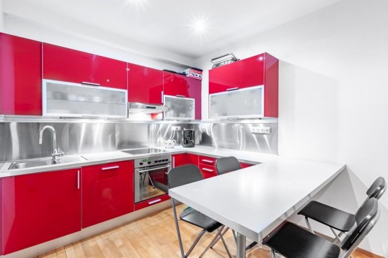 Vybavení zahrnuje kompletně vybavenou kuchyňskou linku všemi spotřebičemi AEG, jídelní posezení, nábytek, pračka, myčka, sušička, vestavěné úložné prostory, osvětlení v celém bytě, bezpečnostní dveře, videotelefon či vstup na čipovou kartu. Vytápění podlahovými konvektory se zdrojem tepla z centrální kotelny v domě. Cena bytu zahrnuje veškeré vybavení uvedené ve fotodokumentaci, sklep a parkovací místo.