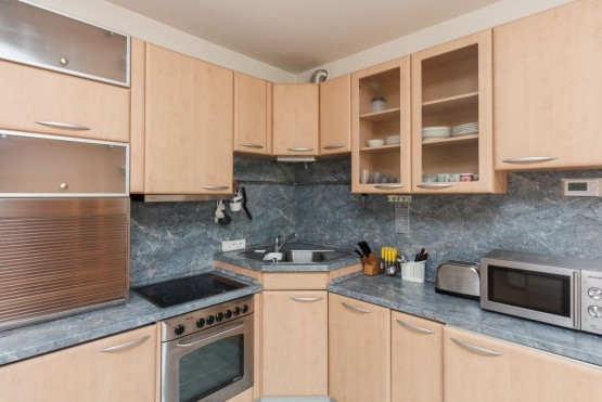 Hezký, kompletně vybavený byt 2+kk k pronájmu v ulici U Zvonařky. Byt se nachází ve 4. patře cihlové budovy s dvěma výtahy. Součástí bytu je vybavená kuchyšnká linka (lednice ...s mrazákem, elektrický sporák a myčka), obývací pokoj, ložnice a koupelna s vanou a toaletou, pračka. Plovoucí podlahy a dlažba. Vytápěno vlastním plynovým kotlem. Zavedena pevná telefonní linka a UPC. Žádaná lokalita Vinohrad, jež nabízí komfortní bydlení - v okolí řada parků, pěkných restaurací, potraviny. K disposici je garážové stání, nutno pronajmout s bytem.