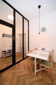 Nabízíme k pronájmu moderní, plně zařízený byt 2+kk s balkonem, který se nachází v druhém patře domu včetně výtahu, v ulici Krásova, Praha 3. Kuchyňská linka je plně vybaven...á nádobím a spotřebiči, jako je lednice s mrazničkou, mikrovlnná trouba, elektrická trouba, sklokeramická varná deska a myčka. Samostatná ložnice má dvoupostel a praktickou šatní skříň. V koupelně je sprchový kout, toaleta s pračkou zvlášť. Možnost internetové připojeníového připojení. Na podlahách parketová podlaha a dlažba. Topení ústřední centrální.