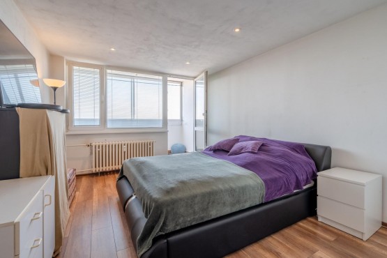 Máte rádi výhledy na dalekou krajinu a oblohu, rádi dýcháte svěží vzduch? Vyhledáváte vysoká patra a oceňujete venkovní prostor k posezení a relaxu? Představujeme vám unikátní nezařízený byt umístěný v 17. podlaží, o dispo...zici 2+kk se 2 lodžiemi, o velikosti 49, 2 m2, se šatnou v bytě a samostatnou komorou, která se nachází o patro výše, v 18. podlaží. Hned vedle domu je Lidl, parkovací možnosti a zastávka autobusu na metro Kačerov.