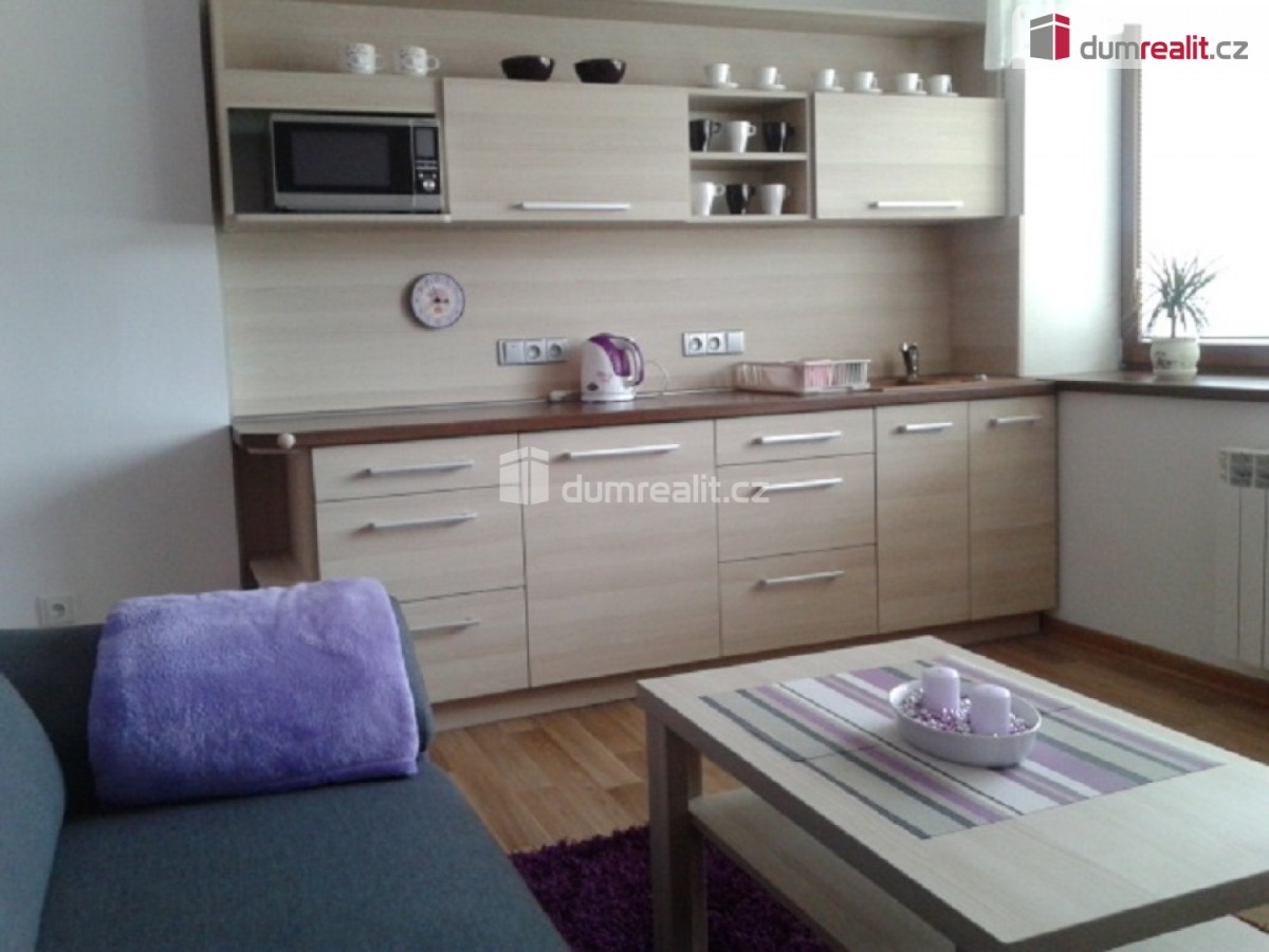 Obývací pokoj s výhledem má kuchyňskou linku s dvouplotýnkovou varnou deskou a lednicí. Dále je zde sedací souprava s konferenčním stolkem. Ložnice je samostatná s dvojlůžkem s kvalitními matracemi. Byt má samostatný balkon, dodávající bydlení pohodu, relax a možnost posezení. Zařízení v apartmánu je nové a kvalitní.