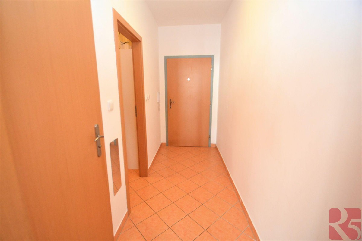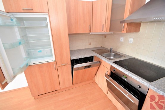 Byt o rozloze 50m2 v posledním patře domu včetně výtahu. Vstupní chodba se vstupem do koupelny kde najdete vanu a připojení na pračku, toaleta je samostatně. Dále vstup do obývacího pokoje s kuchyňskou linkou, která je vybavena vestavěnou lednicí, myčkou nádobí, troubou, sklokeramickou varnou deskou a odsavačem par. Ložnice přístupná z obývacího pokoje kde je také vstup na balkon. Na oknech vnitřní žaluzie.