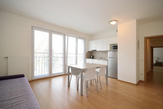 Krásný zařízený byt 2+kk s terasou o celkové rozloze cca 50 m2 se nachází v 5. patře včetně výtahu v Residenci Invalidovna - Karlín. Kuchyně vybavena lednicí s mra...zničkou, sklokeramickou varnou deskou a mikrovlnou troubou. Koupelna z mramoru má sprchový kout, pračku a sociální zařízení WC. Na podlaze je plovoucí podlaha, dlažba. Klidná lokalita, přesto nedaleko centra. Výborné dopravní spojení do centra. U metra "B" Invalidovna, tramvajové zastávky. Výborná občanská vybavenost v okolí. Obchody, restaurace v okolí. Kulturní vyžití zaručeno - nedaleko divadla Kámen, galerie Kámen. Pro odpočinek a sport slouží zdejší park Vítkov, Na Krejcárku. Fotky jsou z velmi podobného bytu.