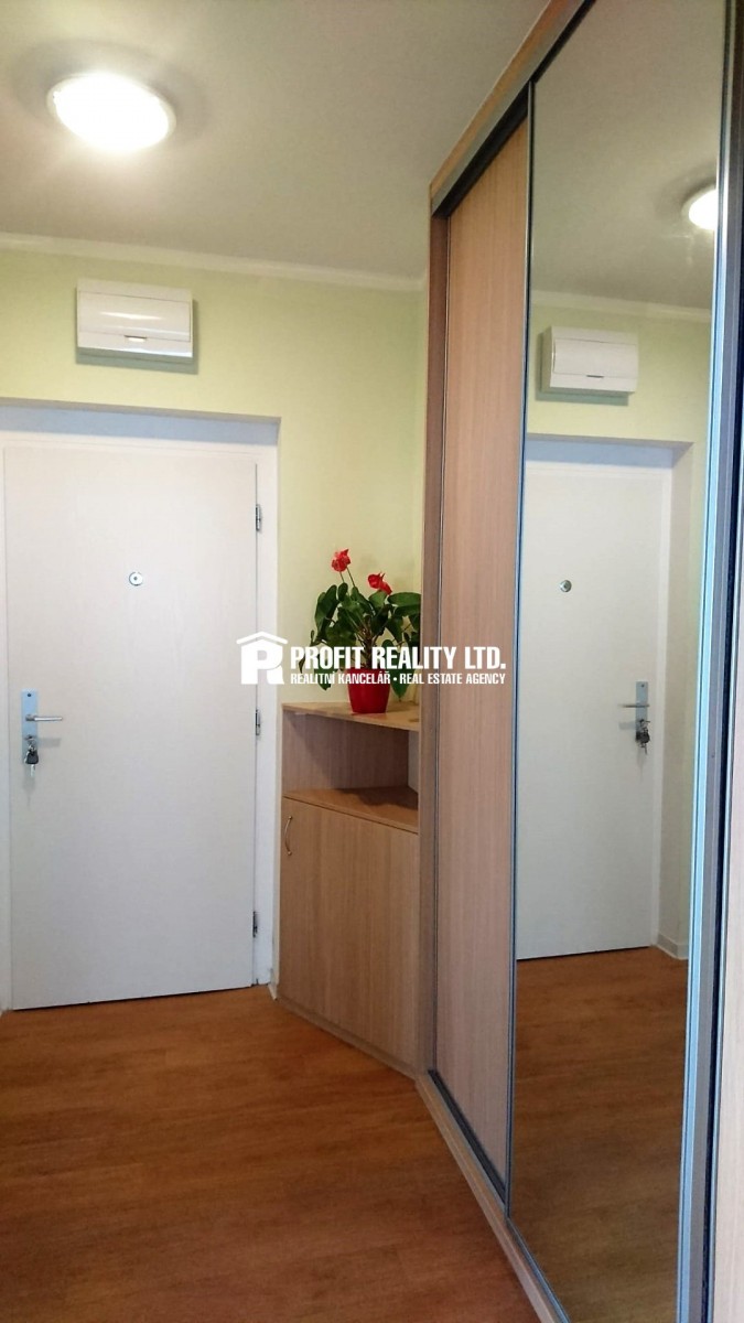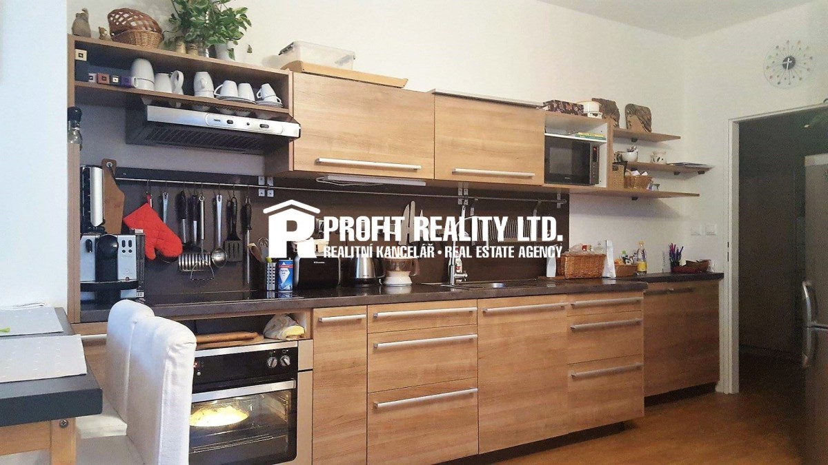 Nabízíme k dlouhodobému pronájmu světlý a čistý byt 2+kk (50 m2) s lodžií (6 m2) po celé délce obývacího pokoje a sklepní kójí na stejném patře (2. NP (druh...é nadzemní patro)) v klidné části Prahy - Uhříněves. Dům je vybaven výtahem. Oproti fotografiím zůstává plně k užívání v koupelně pračka se sušičkou a vysavač. V předsíni botník a prostorné vestavěné skříně. V kuchyni kuchyňská linka se spotřebiči (lednice s mrazákem, elektrická trouba, varná deska, rychlovarná konvice, digestoř), nádobí + hrnce a barový jídelní stůl se 3 židlemi. V ložnici komoda, šatní skříň, manželská postel a lampa. Součástí obývacího pokoje je rozkládací gauč, TV stolek, lampa, TV, internetové připojeníové připojení. Vhodný pro jednotlivce či mladý pár, nekuřáky bez domácích mazlíčků. V místě naleznete vše potřebné, v pěším dosahu se nachází supermarket, v centru městské částí je pošta, kavárna, bankomat, Lékařský dům. Zastávka MHD Venušina je vzdálená 4 min. pěšky od domu a odtud se za 12 min. dostanete na stanici metra Háje. Nejbližší vlaková zastávka je v Kolovratech, snadno dostupná autobusem (cca 5min. jízdy). Vlaky jezdí každých 20min. do zastávky Praha Hlavní nádraží. Dispozici bytu můžete vidět v plánku umístěném ve fotogalerii. Nájemné 12 000 Kč měsíčně + zálohy na ost. služby pro 1 osobu: 4 000 Kč, další osoba + 500 Kč, internetové připojení 500 Kč, vratná kauce ve výši 2 nájmů, provize 16000 Kč. Byt je k nastěhování od 1. 5. 2021.
