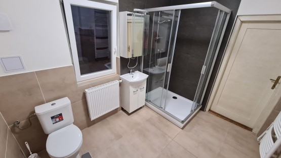 Dlouhodobý pronájem bytové jednotky o velikosti 2 + kuch. kout o výměře 50 m2 v rod. domě. Pronájmem celého 1. patra v rod. domě. Popis bytové jednotky - vstupní chodba, velký pokoj s kuch. linkou, 1 lo...žnice / částečně vybavená / koupelna a sociální zařízení WC. K bytové jednotce je možné užívat prostor pro úschovu jízdního kola nebo věcí k uložení. Zahrada u domu zatím není k užívání. Vhodné pro 1 až 2 dospělé os. Velice dobrá poloha bydlení - okraj města s výjezdem na Prahu, zastávka pražské integrované autobusové dopravy cca 200 m od domu. Velice klidné bydlení ve vilové čtvrti. Nájemné 8 500, - Kč + záloha na služby 3 000, - Kč. Platí se 1 kauce a 1 provize.