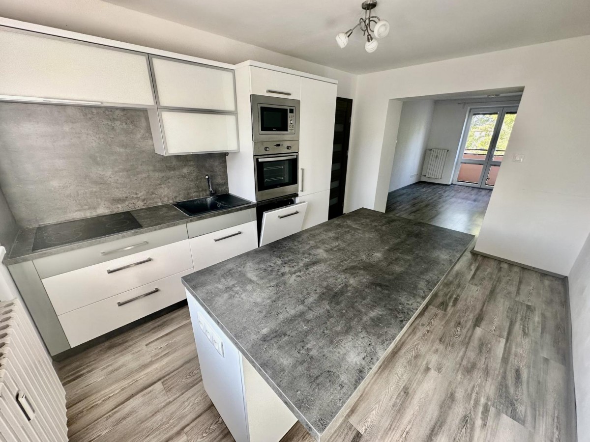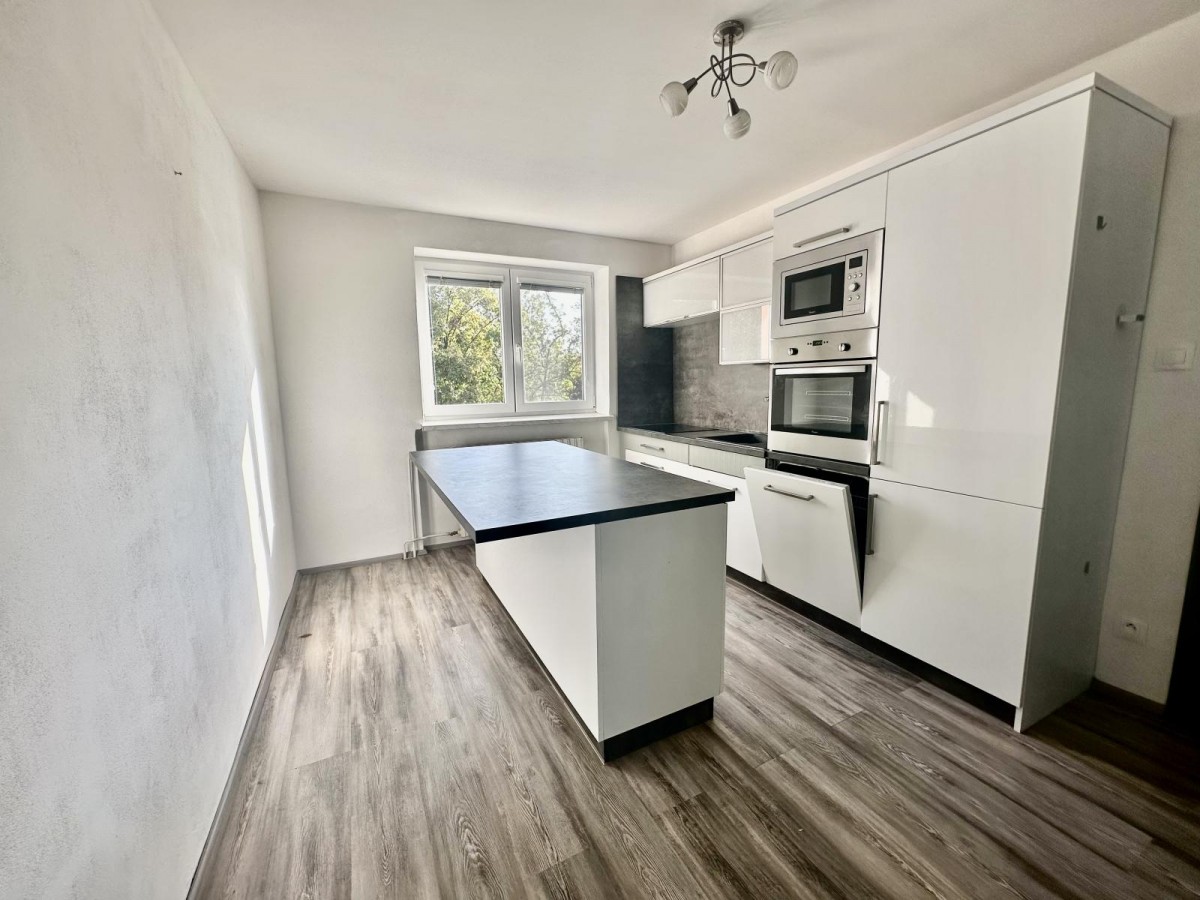 Byt je částečně zařízený a kuchyň je vybavena.