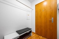 Dispozici bytu 2kk - prostor obývacího pokoje s kuchyňským koutem, jídelnou, samostatná ložnice, koupelna s vanou, samostatná toaleta, vstupní chodba s dostatkem úložných prostor s prostornými zabudovanými šatními skříněmi.