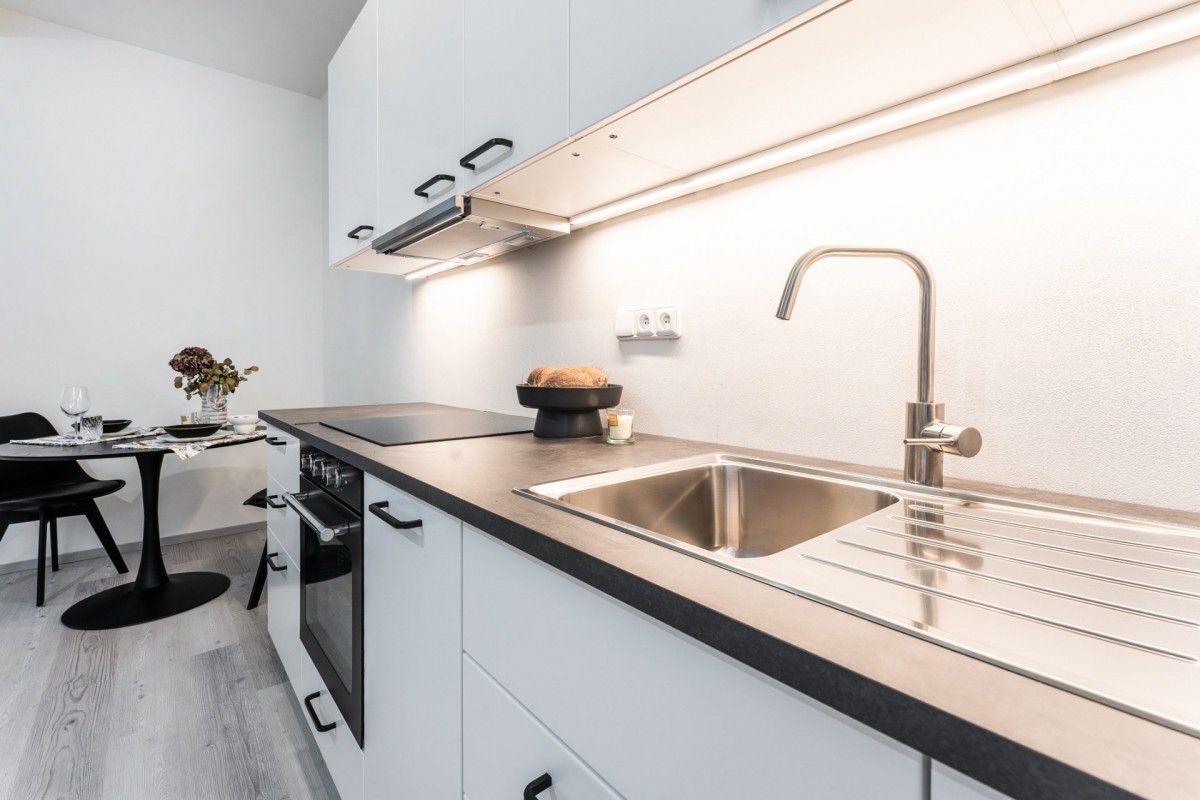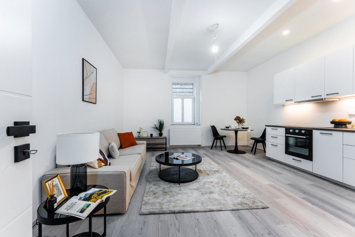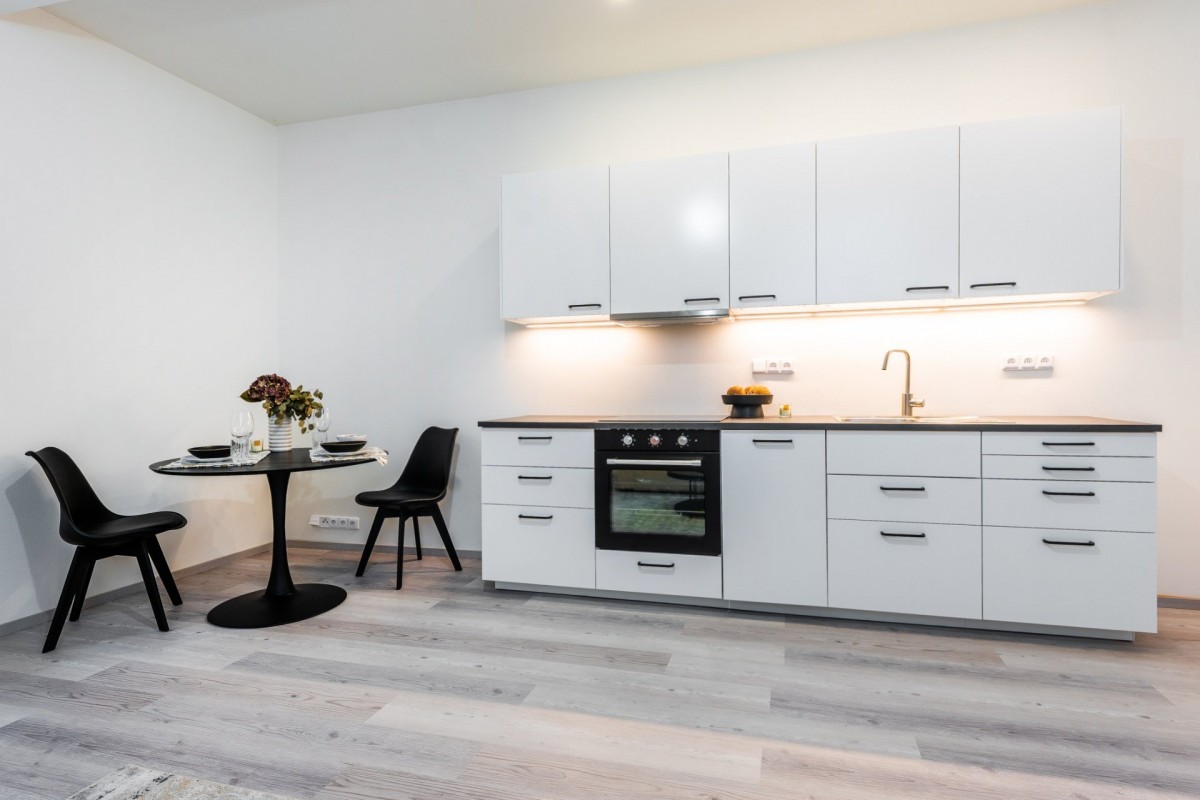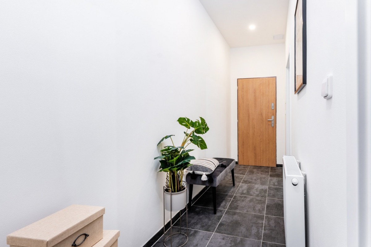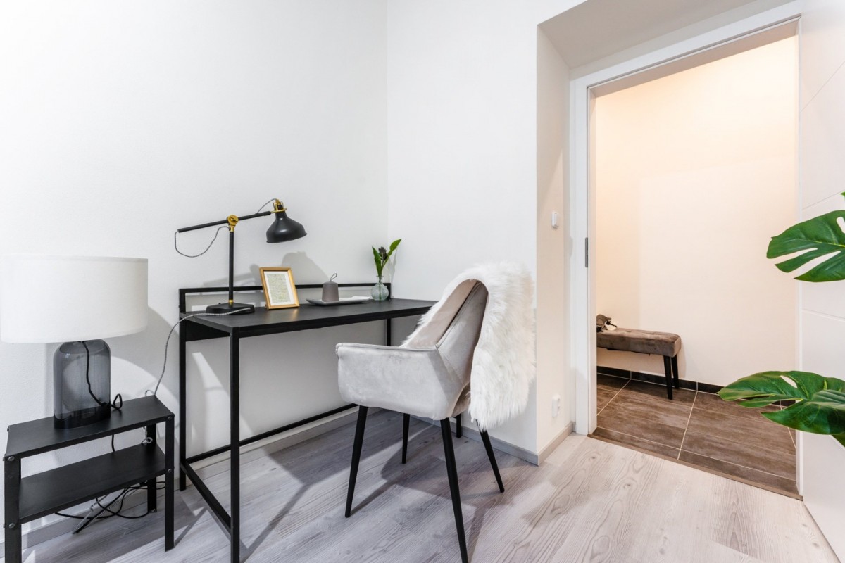 Nachází se v 1. PP a je orientován na severozápad. Ložnice je v neprůchozím pokoji. Průchozí pokoj pak slouží jako obývací pokoj s kuchyňským ko...utem. V bytě je dále koupelna a chodba. Vše po kompletní rekonstrukci. Byt se pronajímá bez vybavení. Energie se převádí na nájemníka.