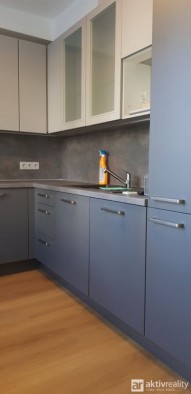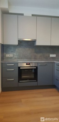 Byt tvoří kuchyňský kout, který se skládá z kuchyňské linky s vestavěnými spotřebiči (lednička, myčka, indukční sklokeramická varná deska, kompaktní trouba, vestavný odsavač par), dva pokoje (22, 3 a 16, 7m2), koupelna se sprchovým koutem a pračkou, samostatné sociální zařízení WC, předsíň s vestavěnými skříněmi. Podlahy v pokojích jsou dřevěné, v předsíni, sociální zařízení WC a koupelně dlažba.