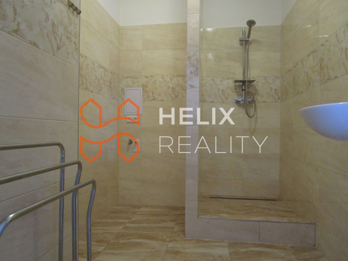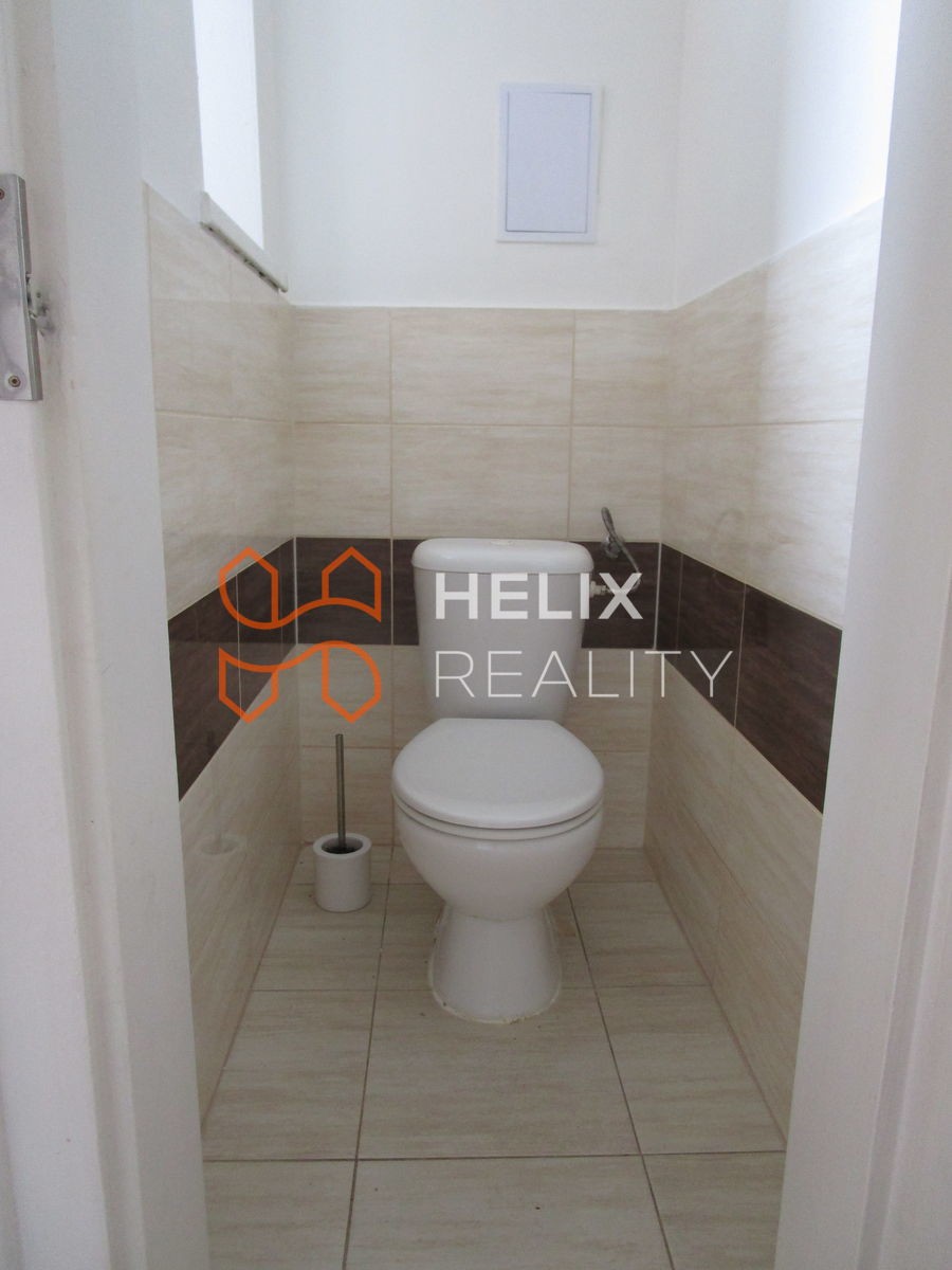 Po otevření vstupních dobových dveří se dostanete do prosvětlené chodbičky, z které vedou původní interiérové dveře do všech místnosti a dokonce i na balkon. Balkon je dlážděný a je orientován do dvora a zahrádky domu s výhledem do okolních zahrad sousedních rodinných domů. K praktickým prvkům patří komora (1, 3m x 1, 5m) s vlastní ventilací, samostatná toaleta a prostorná koupelna se sprchovým koutem, novým umyvadlem se skříňkou a dostatkem místa na pračku i sušičku. Ohřev vody je zajištěn elektrickým bojlerem umístěným nad dveřmi. Jak komora tak sociální zařízení WC má okno vedoucí na balkon.