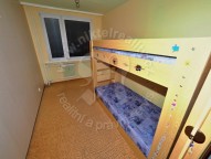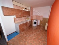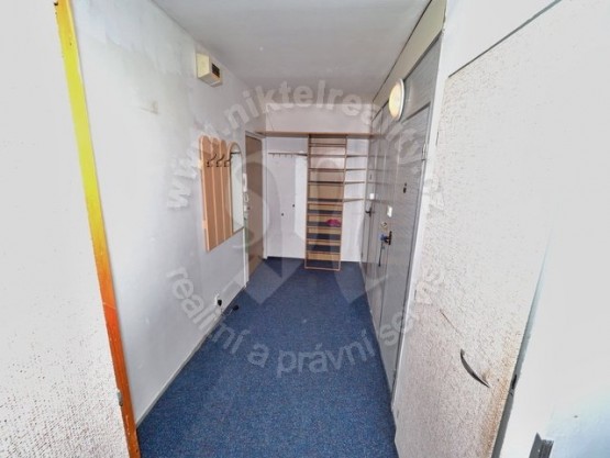 Dispozice: kuchyně s osazenou kuchyňskou linkou s dřezem, volně stojícím plynovým sporákem, místem na jídelní stůl se židlemi, lednici a přístupem na navazující prostorný obývací pokoj, na zemi v kuchyni je položeno PVC, velký obývací pokoj se vstupem na zasklenou lodžii, menší pokoj, (oba pokoje jsou osazeny plastovým oknem s výhledem do zástavby okolních bytových a rodinných domů, okna jsou orientována na západ), vstupní chodba, ze které se vstupuje do obývacího pokoje, menšího pokoje, do koupelny, komory a na samostatnou toaletu. Koupelna s osazenou hlubokou vanou, umyvadlem, umakartové bytové jádro. Komora na uskladnění věcí.