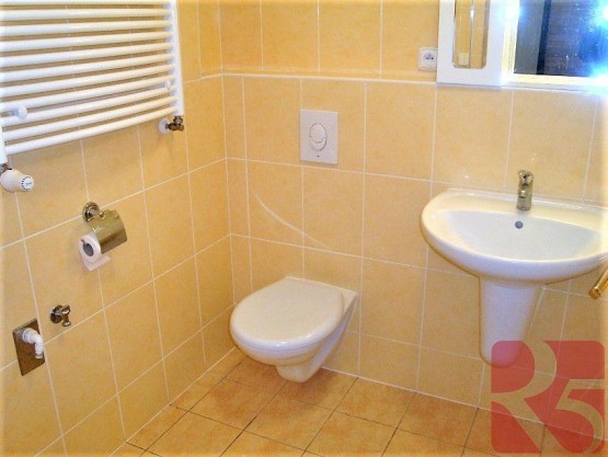 Balkon 6m2 umožňuji příjemné posezení a je přístupný z obývacího pokoje. Koupelna s vanou a toaletou, umyvadlo, přípojka na pračku.