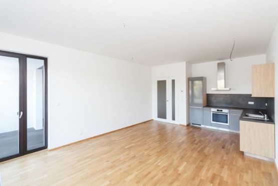 Krásný slunný byt 2+kk k pronájmu o celkové rozloze 54m2 s balkonem (6m2) a sklepní kójí se nachází v prvním patře včetně výtahu v rezidence Marine Island v... ulici Sanderova, Praha 7.