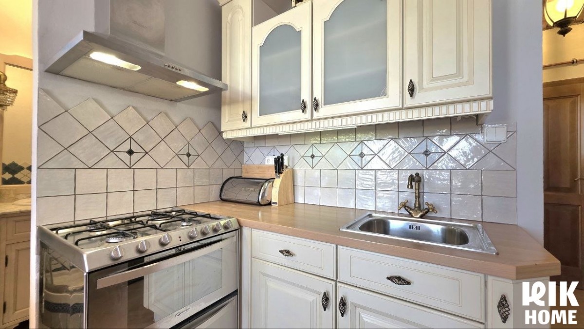 Vybavení: plně zařízená kuchyňská linka s jídelním stolem a židlemi, pohovka, kompletně vybavená koupelna a ložnice s postelí, komodami a skříněmi.