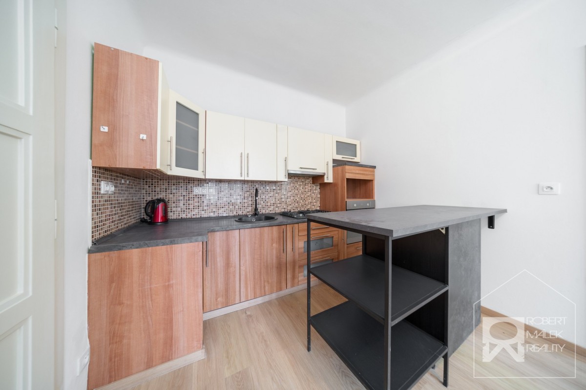 Vybavení: kuchyňská linka na míru s novou plynovou deskou, elektrickou troubou, digestoří + barový pult, stůl + 2 x židle, šatní skříň v ložnici a dvoupostel, v předsíni šatní skříň na míru, koupelna - pračka. Podlahy: ložnice, obývací pokoj s kuchyňským koutem, předsíň - plovoucí, koupelna, toaleta, zasklený balkón - dlažba. Vytápění: plynové WAW v obývacím pokoji s kuchyňským koutem, elektrické přímotopy - ložnice a předsíň, ohřev vody: nový elektrický kotel.