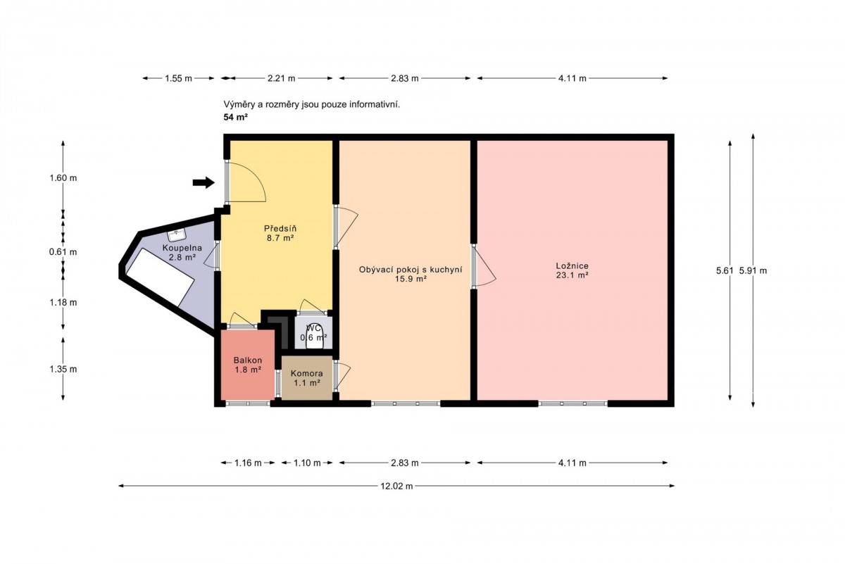 2+kk, 54 m2, cihlová, OV, 3. podlaží