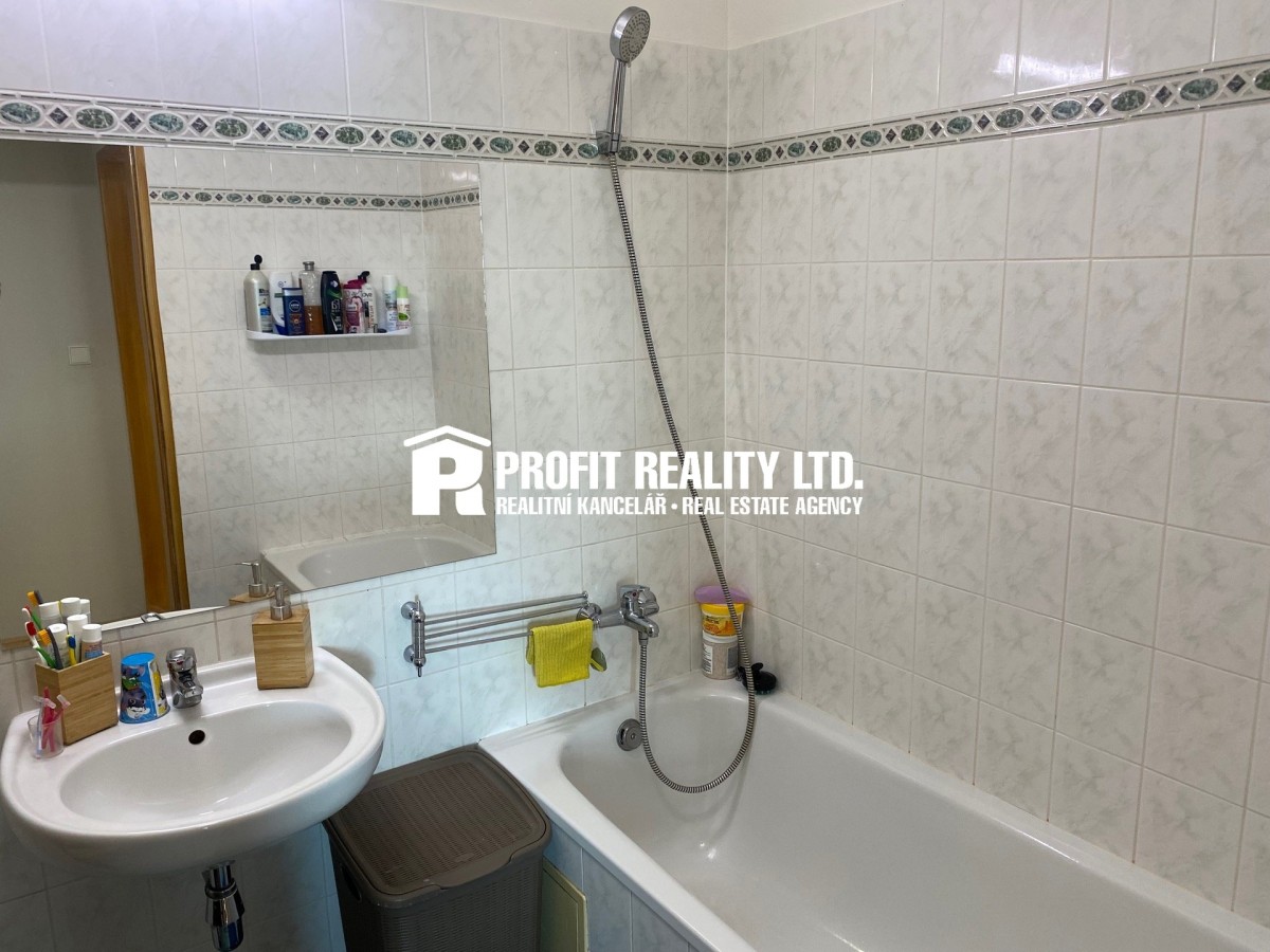 Celková užitná plocha 54 m2 nabízí prostornou obývací místnost sp...ojenou s kuchyňským koutem, ložnici a koupelnu s sociální zařízení WC. Byt se nachází ve velice dobrém stavu a je umístěn ve třetím patře cihlového domu a součástí je i balkón o velikosti 2 m2 a sklep s plochou 2 m2. Vybavení není součástí pronájmu. Byt je připraven k okamžitému nastěhování. Ideální volba pro jednotlivce nebo mladý pár, kteří hledají moderní a útulné bydlení v klidné a příjemné lokalitě s dobrou občanskou dostupností do centra města. Autem jste za 18 minut na záchytném parkovišti u metra Chodov odkud pohodlně cestujete dále městskou hromadnou dopravou, nebo můžete využít přímo vlakový spoj Říčany - Hlavní vlakové nádraží a takto se dopravit pohodlně do centra za 25 minut.