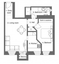 Byt je situován v 2. np domu včetně výtahu, svojí dispozicí nabídne útulný obývací pokoj s malým balkonkem a výhledem do parku, vybavenou ložnici, předsíň a koupelnu.