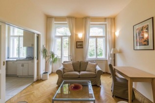 Žádaná lokalita, moc hezký zrekonstruovaný secesní dům, v okol...í všechny potřebné služby, kavárny a restaurace, možnost relaxace na zahradě přístupné pouze rezidentům.