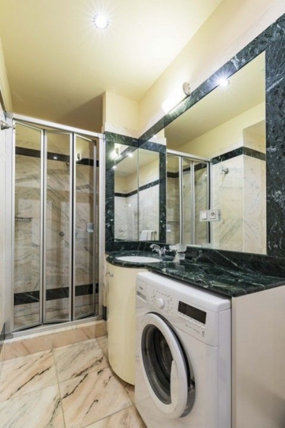 Je kompletně vybavený nábytkem a spotřebiči. V kuchyni je lednice s mrazákem, mikrovlnná trouba, myčka, v koupelně pračka. Byt je vybaven vestavěnými skříněmi a komplením nábytkem, v ceně je wi - fi internetové připojeníové připojení.
