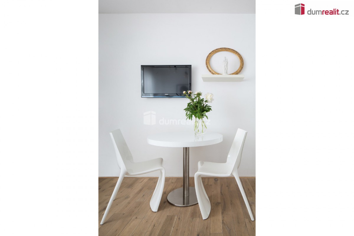 Dovolujeme si Vám zprostředkovat pronájem stylového mezonetového apartmánu DeLuxe Angel 84 s vlastní terasou, který se nachází na Plzeňské ulici v oblíbené lokalitě Prahy 5. Jedná se o dispoziční řešení ...e + kuchyňský kout">2+kk o celkové podlahové ploše 55 m², situované v 5. patře bez výtahu v historickém domě z 19. století. Interiér bytu je prakticky rozdělen do dvou podlaží. V přízemí se nachází obývací prostor propojený s plně vybavenou kuchyní včetně myčky nádobí, dále je zde koupelna a prostorná šatna. V horním patře naleznete ložnici s přímým vstupem na terasu, která poskytuje příjemné místo pro relaxaci. Pro zajištění maximálního komfortu v letních měsících je apartmán vybaven klimatizací, samozřejmostí je také TV se satelitním příjmem. Velkou přidanou hodnotou tohoto pronájmu je nadstandardní servis zahrnutý v ceně, který obsahuje Wi - Fi připojení a především pravidelný úklid prováděný jednou týdně, včetně výměny lůžkovin a ručníků. Nemovitost se nachází v lokalitě s výbornou dopravní dostupností, v těsné blízkosti tramvajové zastávky U Zvonu a pouhých 5 minut jízdy od stanice metra Anděl. Přístup k bytu v posledních dvou patrech je řešen po schodech bez výtahu. Apartmán je vhodný pro 1 až 2 osoby a je připraven jak pro krátkodobé ubytování, tak pro dlouhodobý pronájem. V případě dlouhodobého pronájmu činí měsíční nájemné 33 000 Kč, ke kterému se připočítávají služby spojené s užíváním nemovitosti a servisem ve výši 4 000 Kč. Majitel požaduje úhradu vratné kauce ve výši 33 000 Kč. Pro zájemce o kratší pobyty začíná cena při ubytování do jednoho měsíce na 2. 840 Kč za noc, při pobytu do jednoho týdne pak od 3. 190 Kč za noc. Byt je volný ihned a připraven k okamžitému nastěhování. Ev. číslo: 654702. Energetický štítek: G